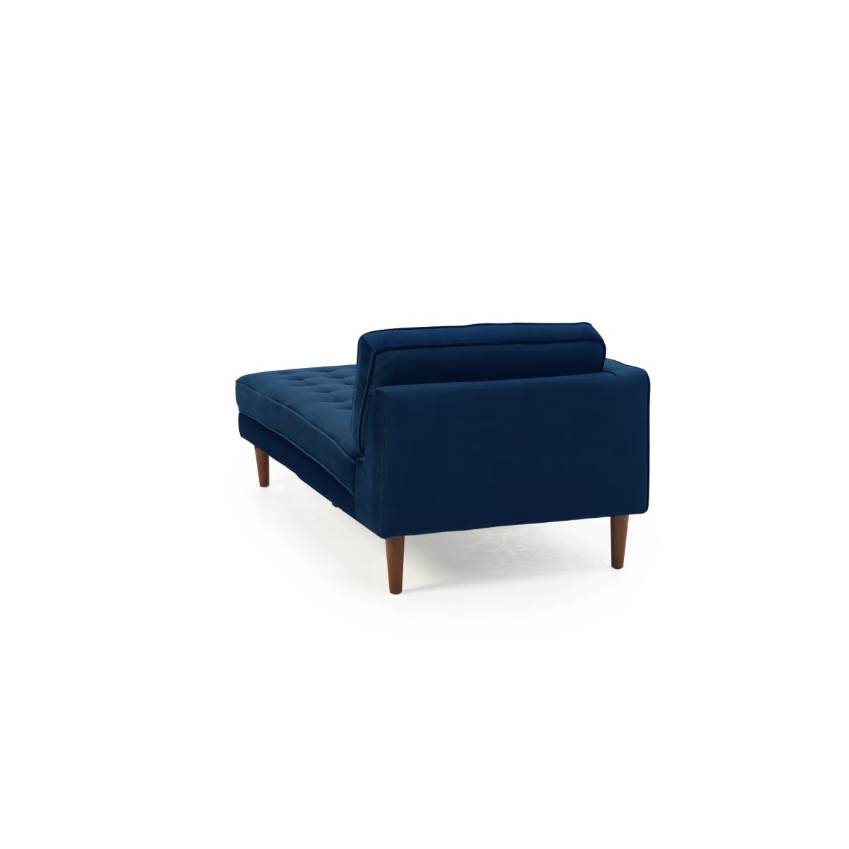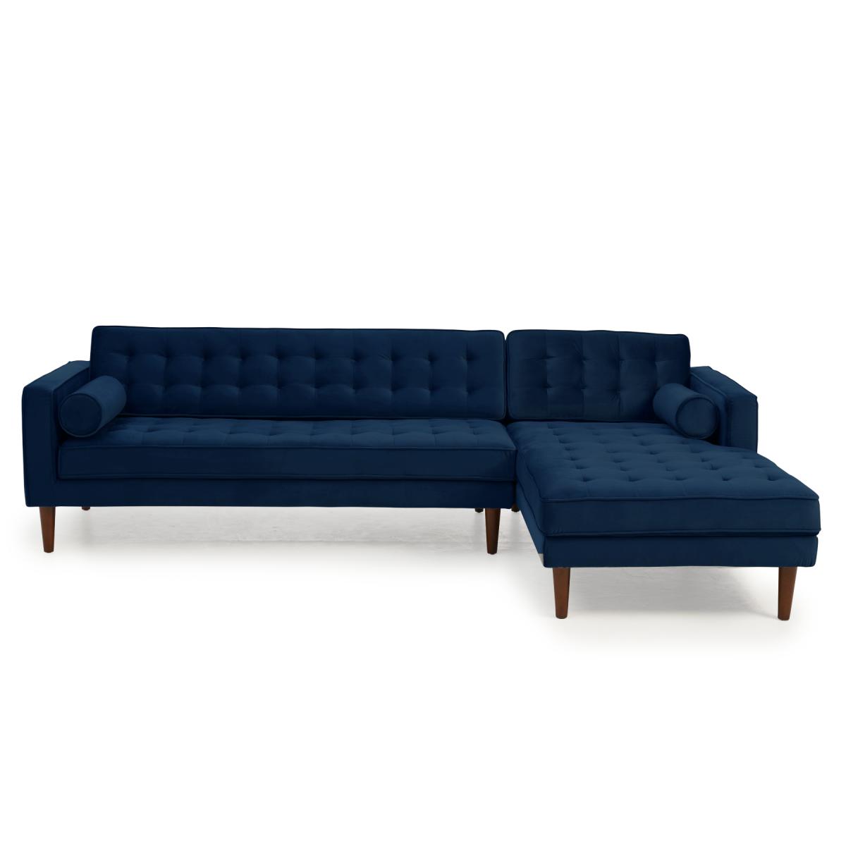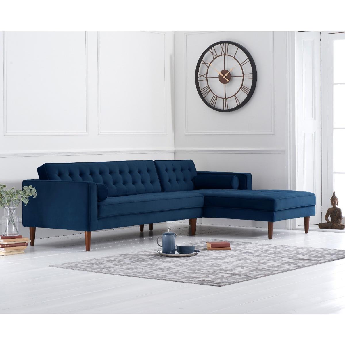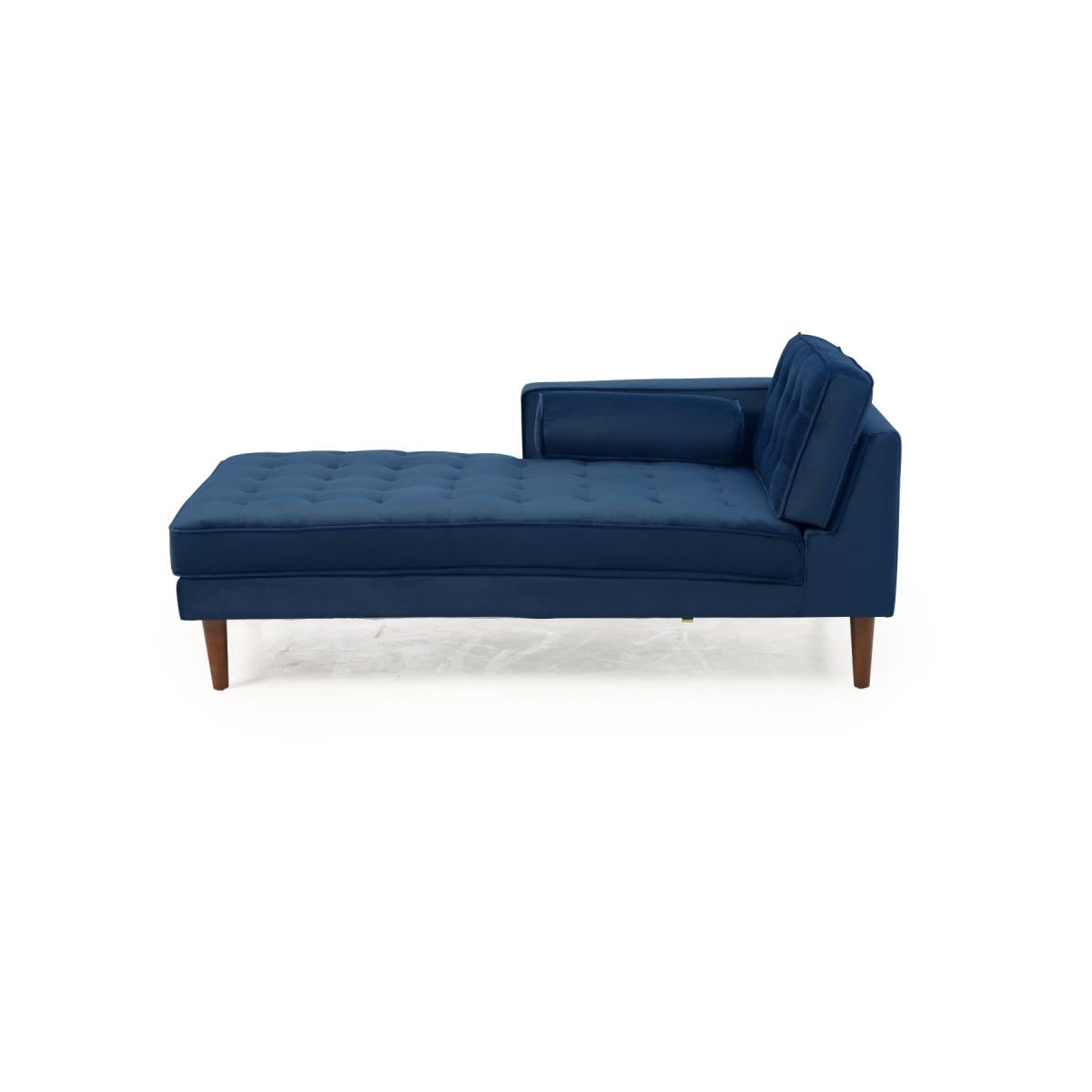 With a modern silhouette and buttoned design, the Indus Blue Velvet Right Facing Chaise Sofa is a stylish addition to any home. Featuring soft blue velvet upholstery, the Chaise Sofa is chic and spacious – perfect for the whole family to relax in style. Large and luxurious blue velvet Chaise Sofa Soft-touch plush velvet for a sumptuous look and feel Stylish and spacious – ideal for the whole family Buttoned design on the backrest for a touch of classic style Deep filled foam seat cushions offer comfort and support Elegant solid wood feet are sturdy and supportive Note: Sofa height is 61cm without back cushions.