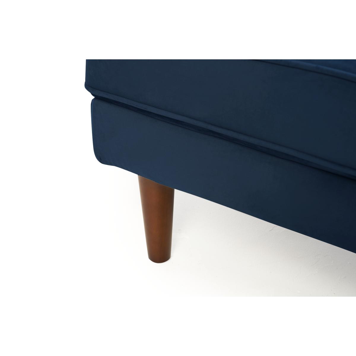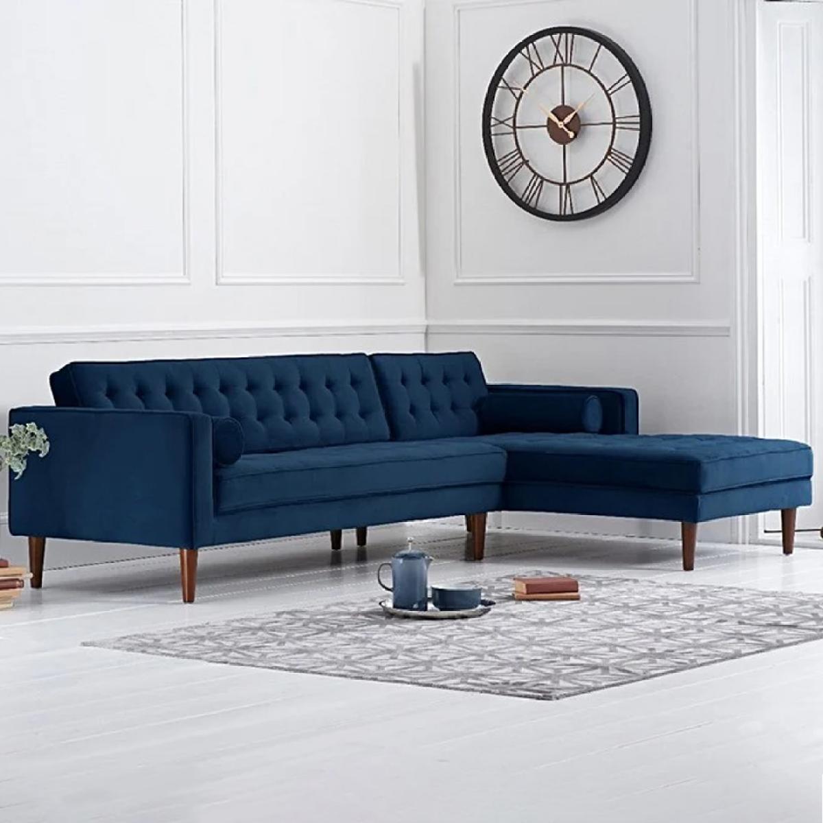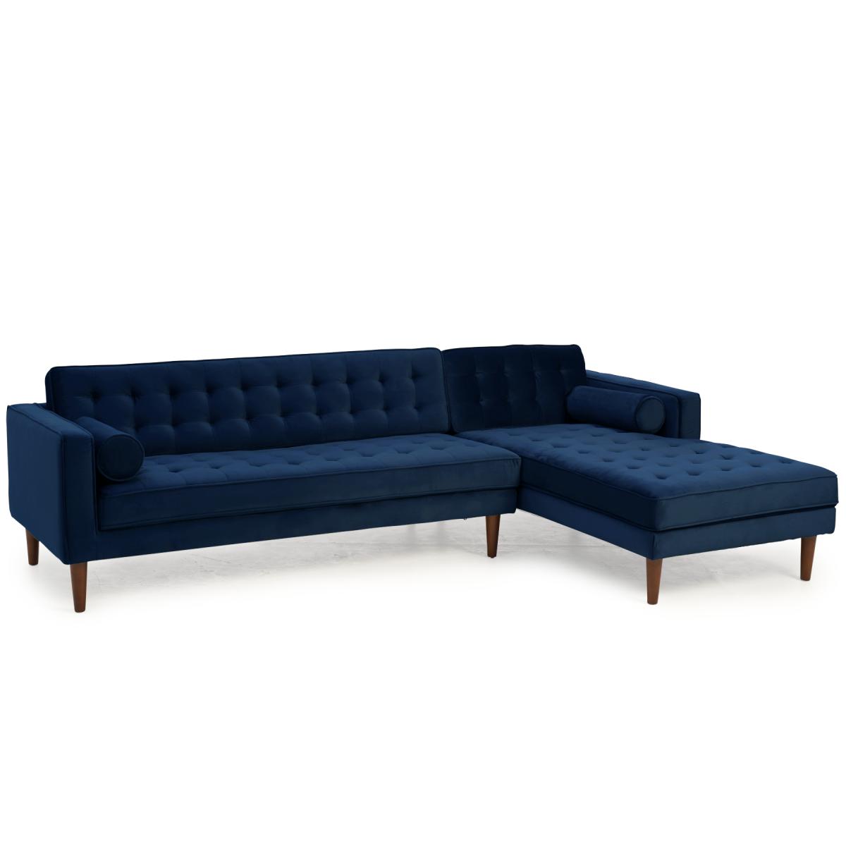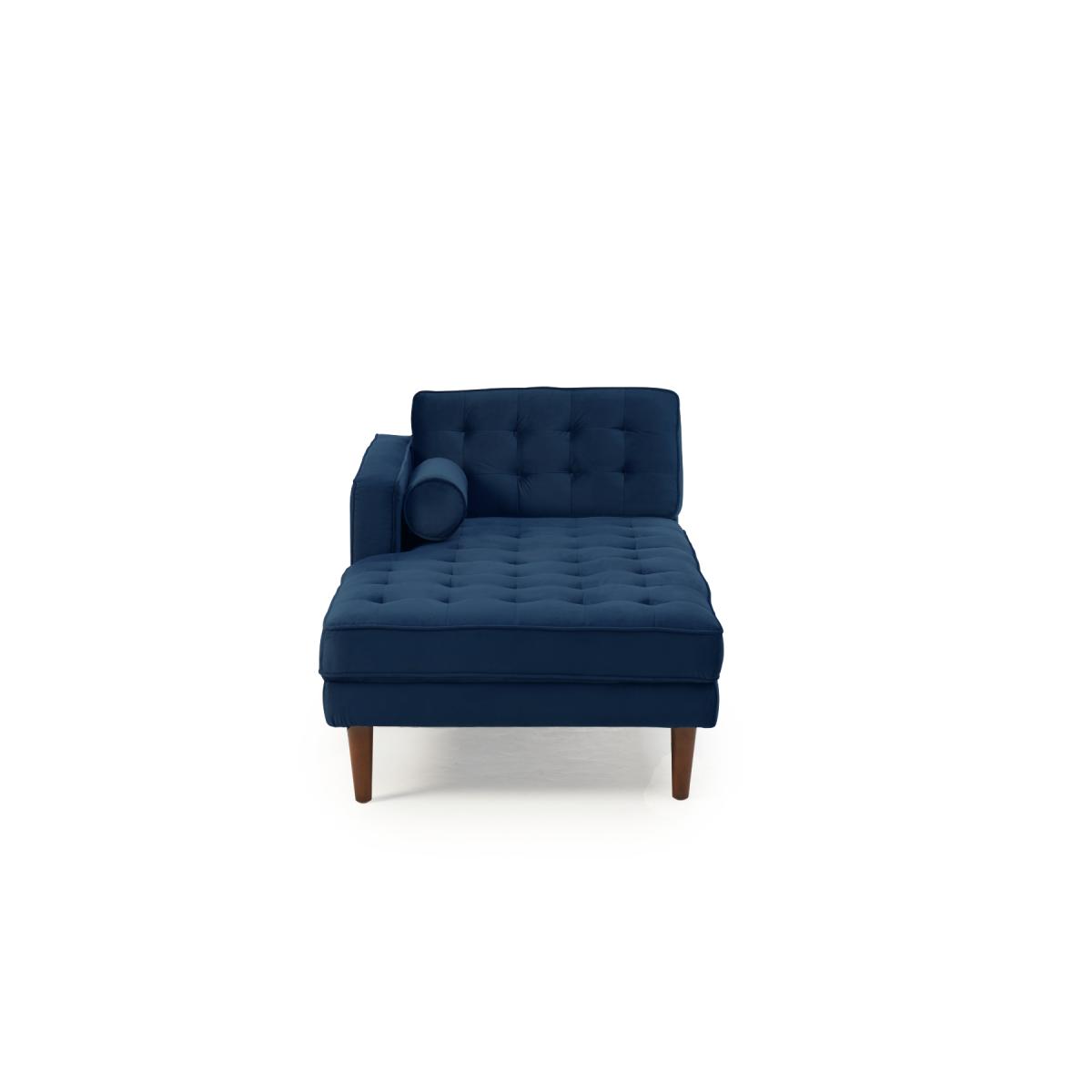 With a modern silhouette and buttoned design, the Indus Blue Velvet Right Facing Chaise Sofa is a stylish addition to any home. Featuring soft blue velvet upholstery, the Chaise Sofa is chic and spacious – perfect for the whole family to relax in style. Large and luxurious blue velvet Chaise Sofa Soft-touch plush velvet for a sumptuous look and feel Stylish and spacious – ideal for the whole family Buttoned design on the backrest for a touch of classic style Deep filled foam seat cushions offer comfort and support Elegant solid wood feet are sturdy and supportive Note: Sofa height is 61cm without back cushions.