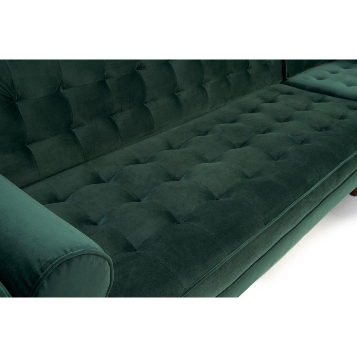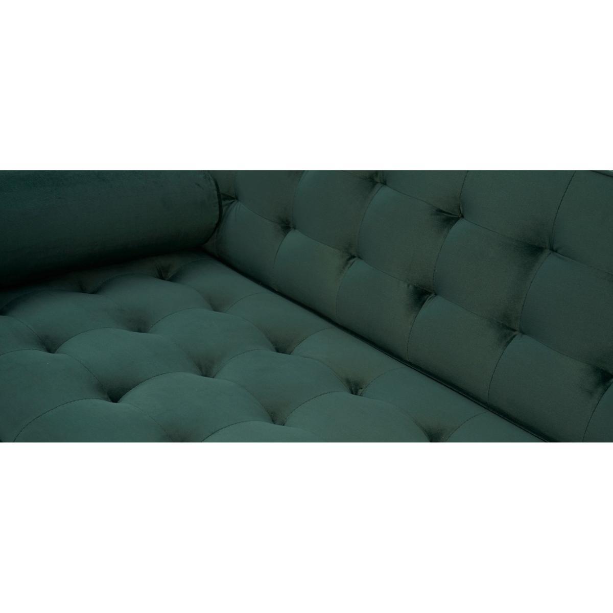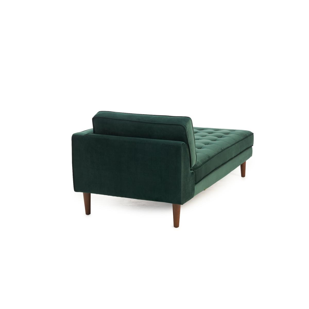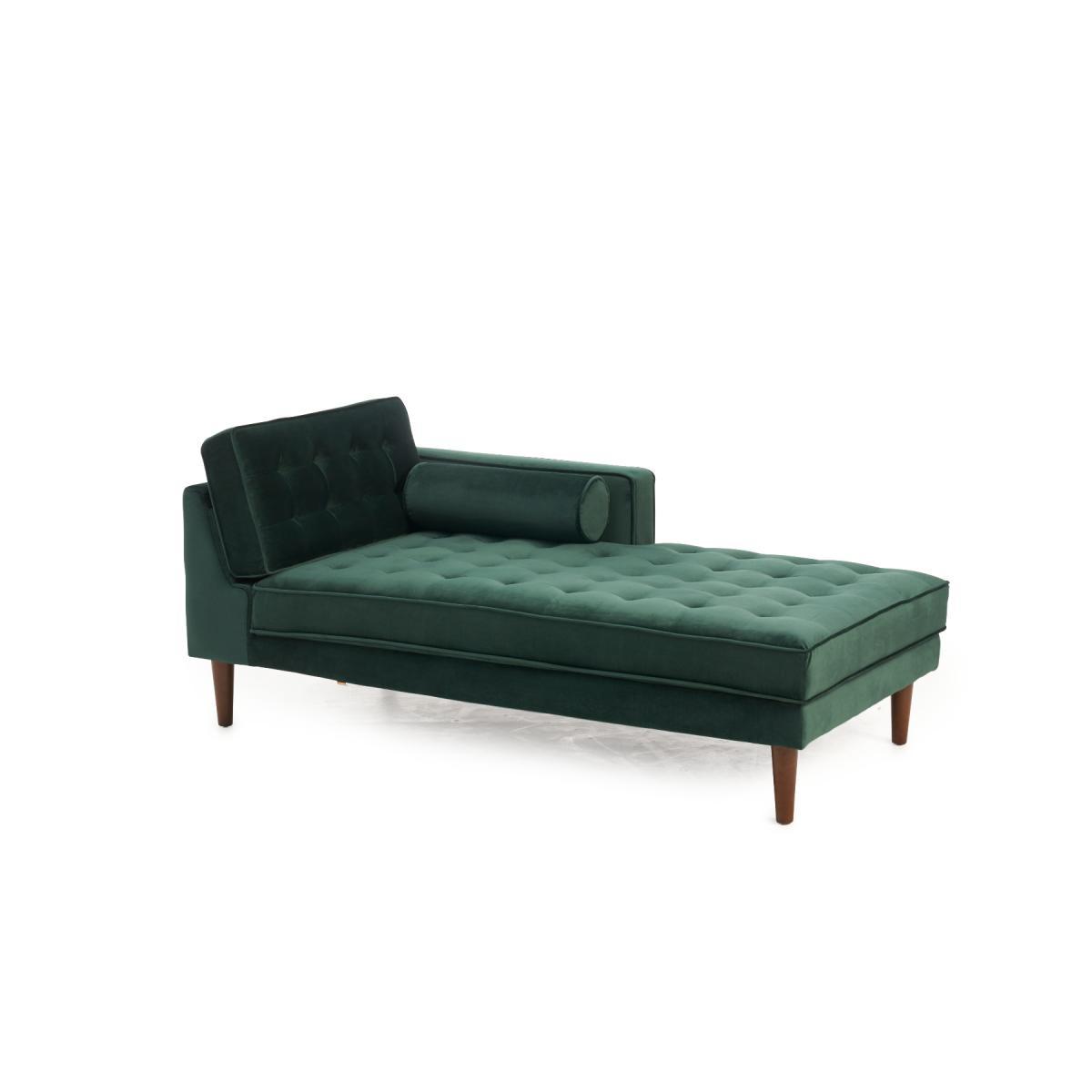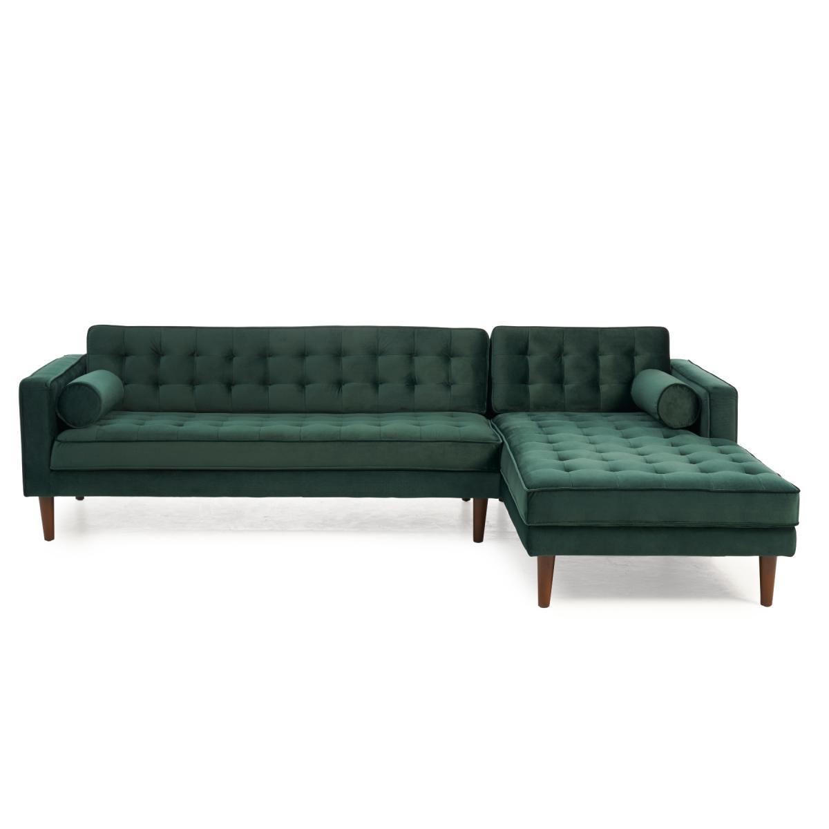 The Indus Green Velvet Left Facing Chaise Sofa makes a stylish impression in any home. Featuring clean modern lines and a retro deep buttoned design, the chaise sofa effortlessly blends comfort and style. The Left facing chaise sofa is upholstered in smooth rich green velvet for an eye-catching look that makes the Indus a true statement piece. For a comfortable sit, the sofa boasts deep foam filled seats. Also available in a Right Facing Option Note: Sofa height is 61cm without back cushions.