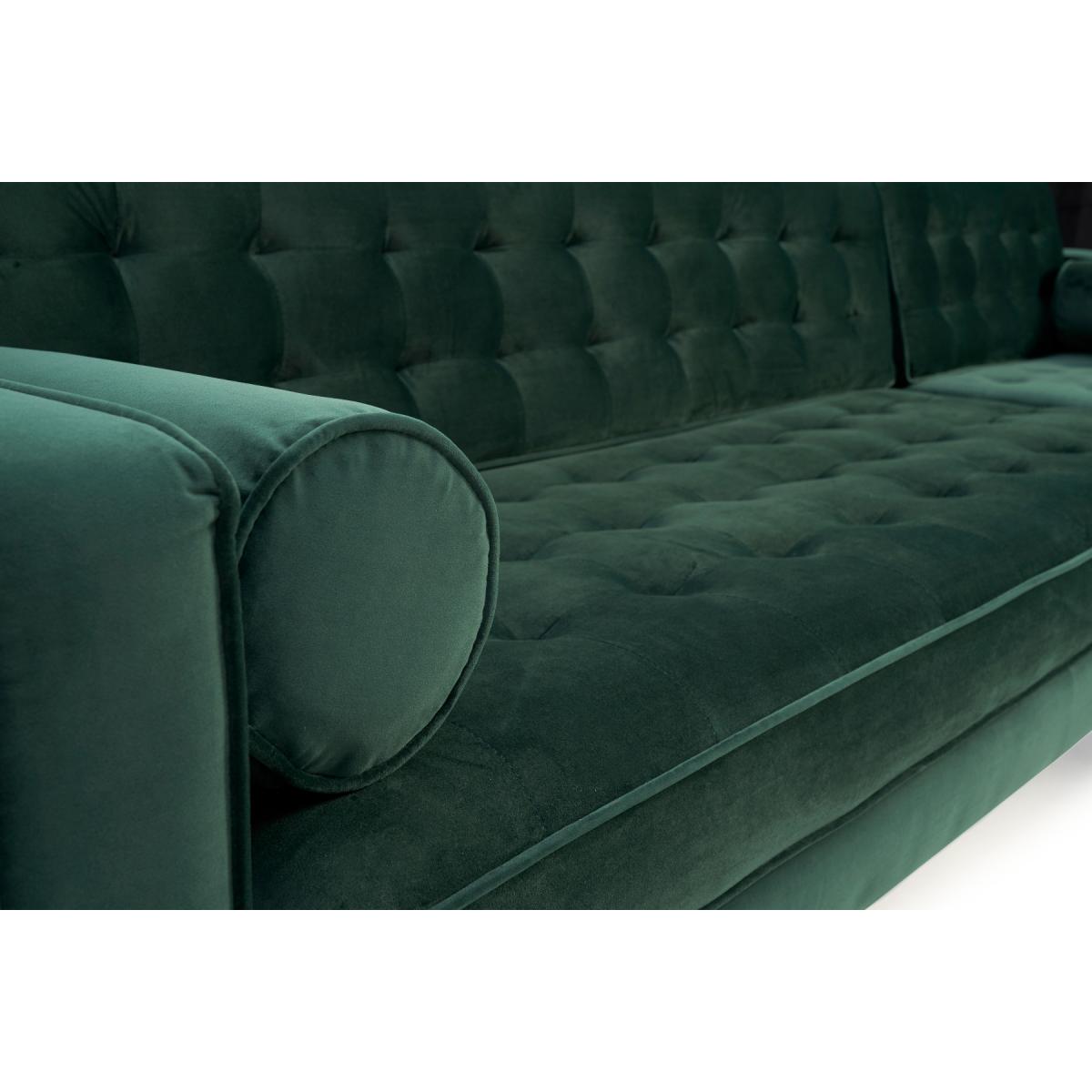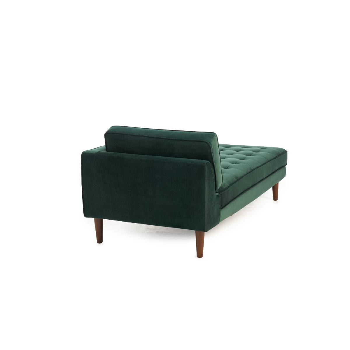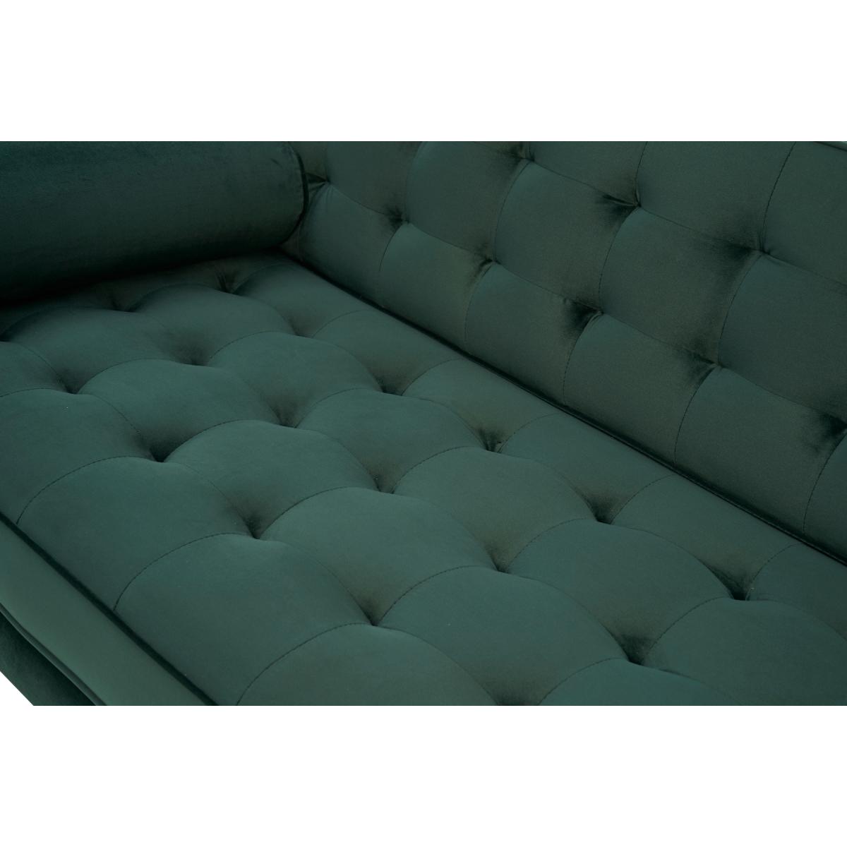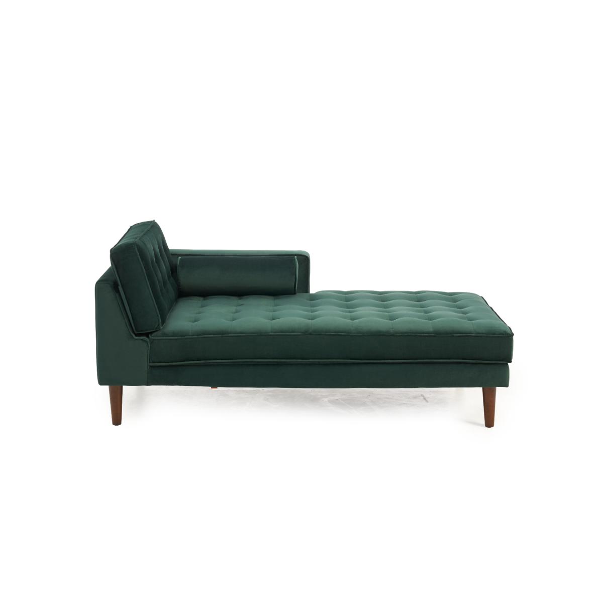 The Indus Green Velvet Right Facing Chaise Sofa makes a stylish impression in any home. Featuring clean modern lines and a retro deep buttoned design, the chaise sofa effortlessly blends comfort and style. The right facing chaise sofa is upholstered in smooth rich green velvet for an eye-catching look that makes the Indus a true statement piece. For a comfortable sit, the sofa boasts deep foam filled seats. Also available in a Left Facing Option Note: Sofa height is 61cm without back cushions.