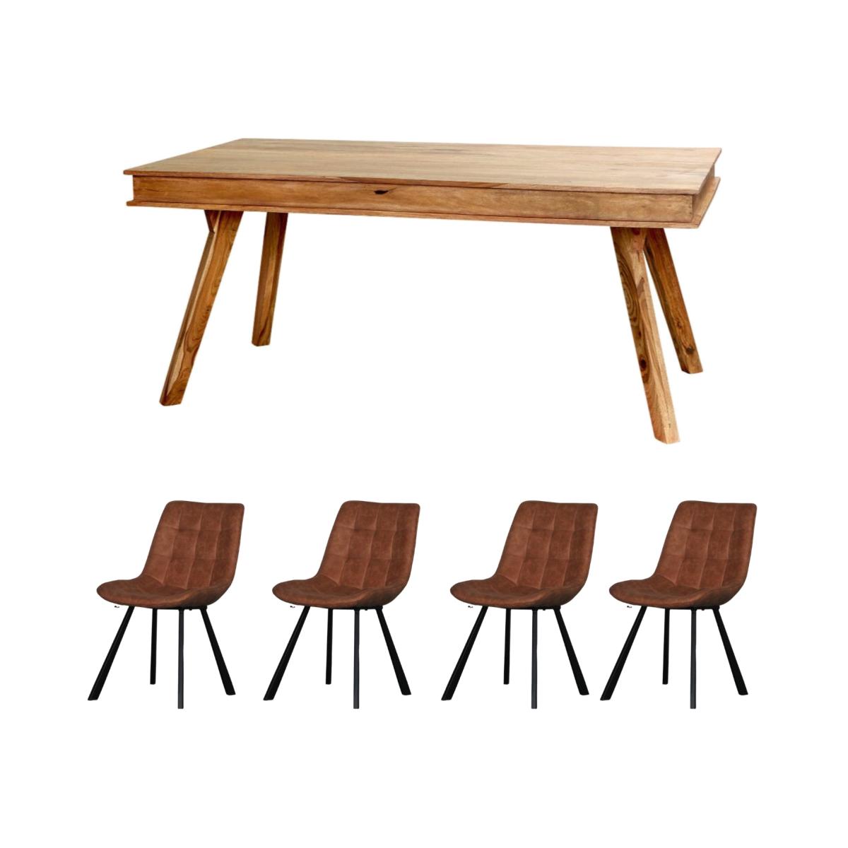 Enliven your dining area with this brilliant Indus Sheesham Medium Table Set! Crafted by expert artisans in India from solid Grade A Sheesham wood, it brings a contemporary aesthetic and eco-friendly quality. Its natural sheesham tone and natural wood variations tantalize the senses, while the industrial-style chairs with steel legs coated in black powder and light brown tan PU leather upholstery add a modern flair.