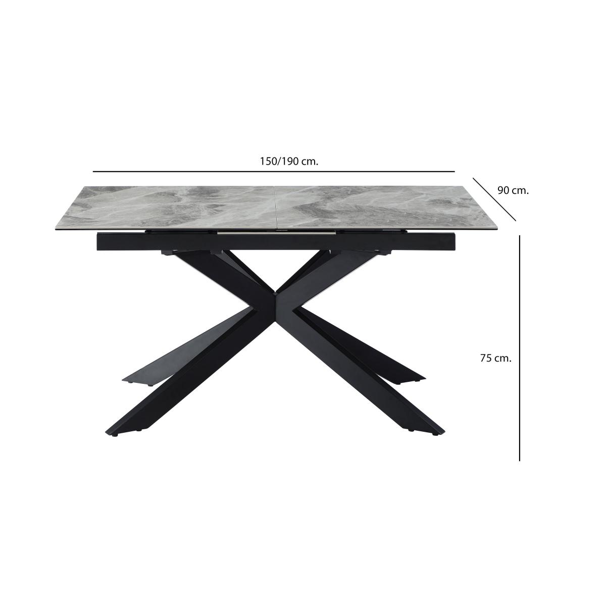 The Indus Valley Apollo 6 Seater Extending Dining Table offers the best of both worlds with its grey ceramic effect finish and X design iron legs. This modern table can comfortably seat six and features a simple drop-in leaf mechanism, extending it from 150cm to 190cm. This provides additional seating space for special occasions or larger gatherings, all while maintaining a sleek and stylish aesthetic.