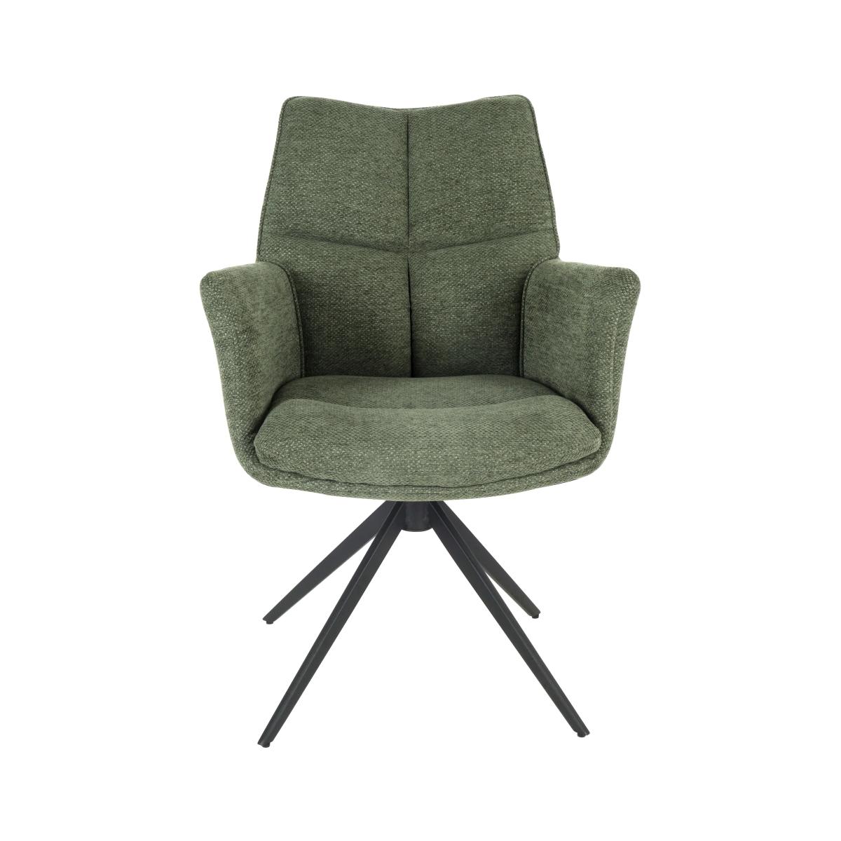 * Swivel dining chair * 360 degree swivel function * Soft chenille upholstery * Black powder coated metal legs The Camden chair offers a comfortable seat with elevated functionality. Upholstered in a soft chenille fabric, the muted tone adds warmth without dominating your space. Armrests and a gently curved back provide support, while the 360-degree swivel with auto return keeps the design feeling dynamic and responsive. The black metal base grounds the piece, making it a great addition to a dining table or as an accent in a home office or reading corner.