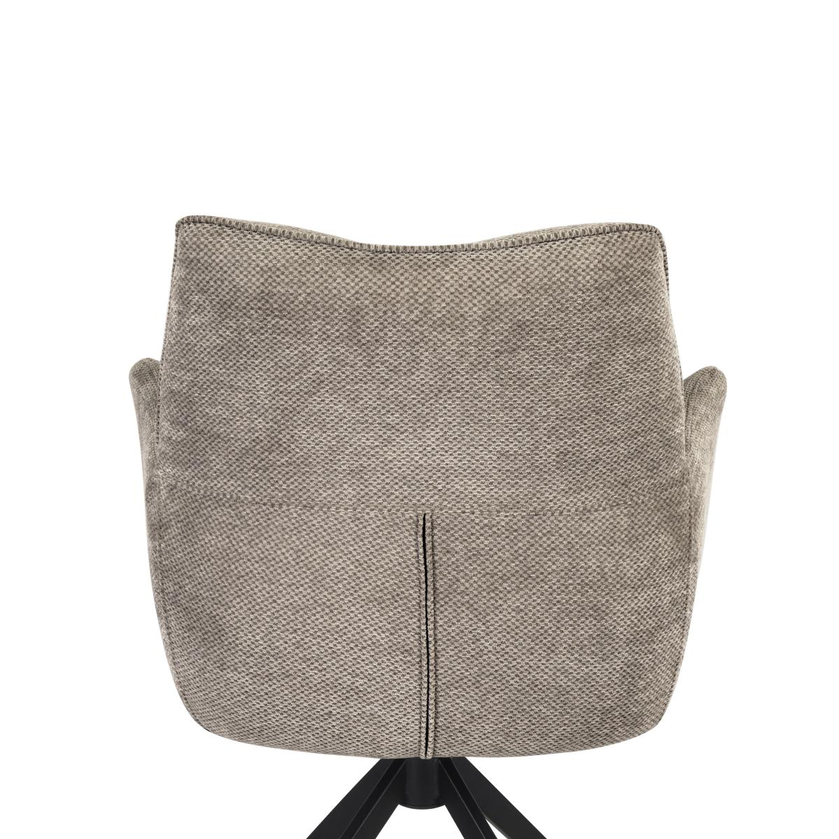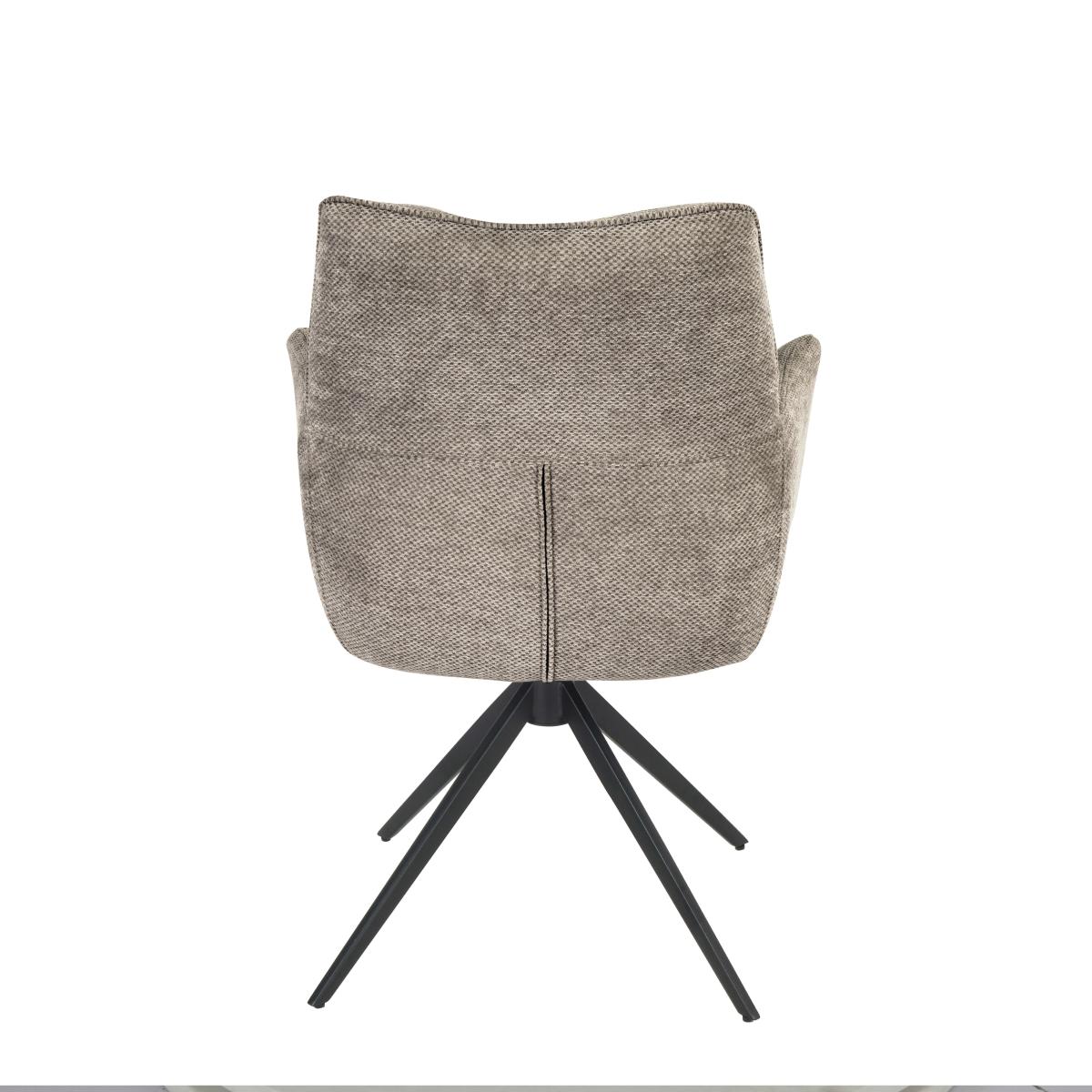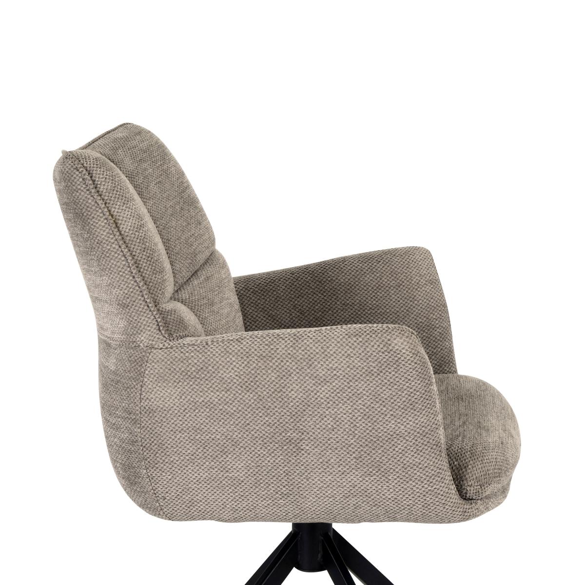 * Swivel dining chair * 360 degree swivel function * Soft chenille upholstery * Black powder coated metal legs The Camden chair offers a comfortable seat with elevated functionality. Upholstered in a soft chenille fabric, the muted tone adds warmth without dominating your space. Armrests and a gently curved back provide support, while the 360-degree swivel with auto return keeps the design feeling dynamic and responsive. The black metal base grounds the piece, making it a great addition to a dining table or as an accent in a home office or reading corner.