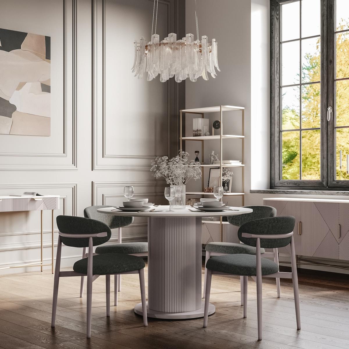 I’m a fan of the Cleo dining set for its clean lines and compact footprint - the round table keeps circulation easy in smaller spaces, while the gently fluted pedestal adds subtle texture without overwhelming a room. The chairs, with their curved backs and slim metal legs, strike a balance between comfort and contemporary style, making this set versatile enough for a city apartment or a countryside kitchen. Pair it with muted walls and natural-finish wood flooring for a Scandi-inspired look, or introduce jewel-toned accessories and a statement light fitting to lift a neutral palette. Keeping centrepieces low - think a simple vase of seasonal blooms or a cluster of candles - will maintain sightlines and highlight the table’s sculptural base.