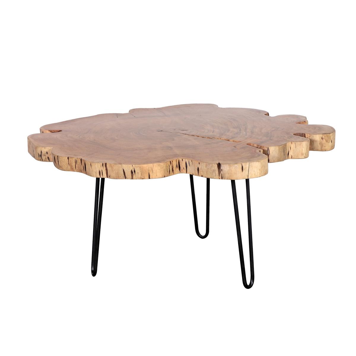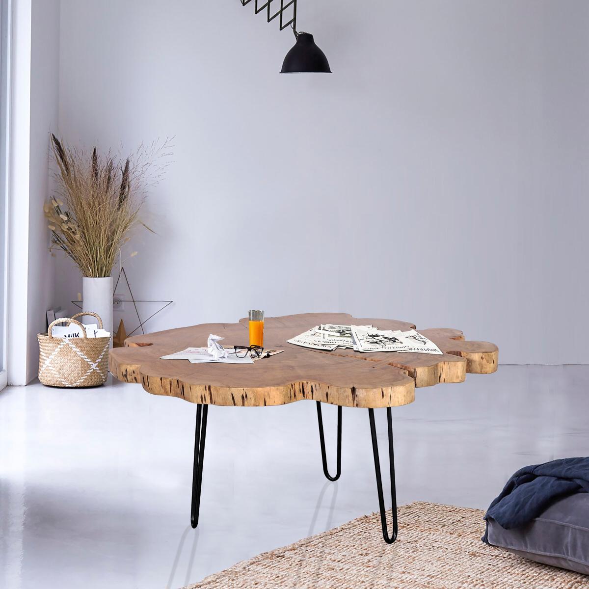 The Indus Valley Live Edge Coffee Table seamlessly blends classic and contemporary elements. Its natural live edge effect top paired with black iron legs creates a versatile and stylish piece that's perfect for showcasing magazines, flowers, and more.