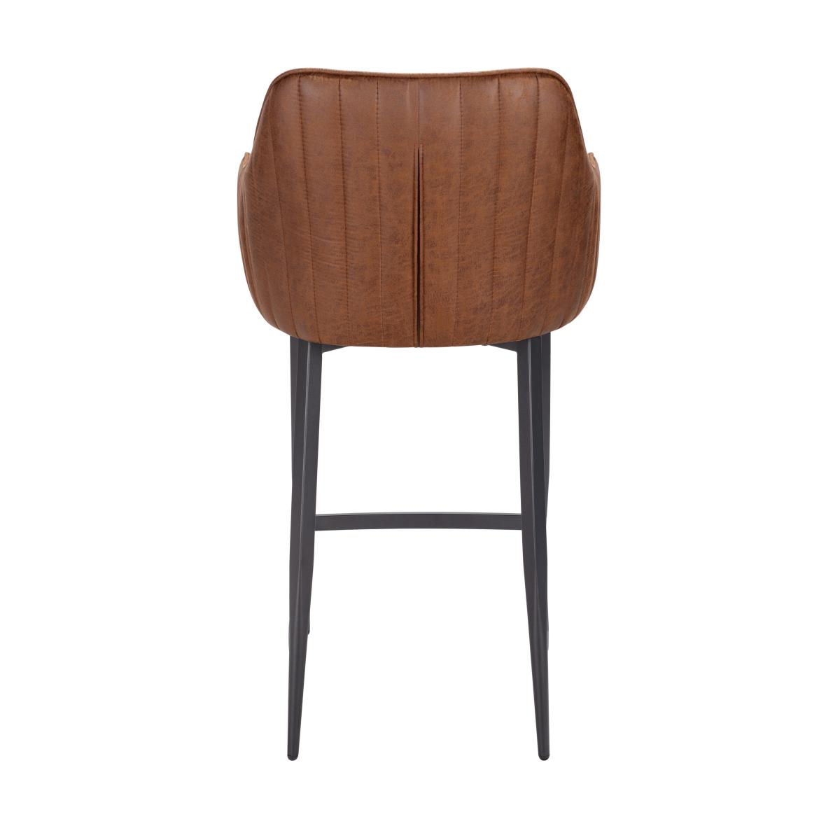* Faux leather upholstery * Iron legs * Plush filled seat * Modern design A perfect balance of comfort and character, the Logan bar stool is a stylish addition to any space. Upholstered in durable faux leather with a rich tan hue, this stool features a comfortably padded seat and supportive armrests. The sturdy iron legs enhance its industrial appeal, making it a versatile piece for dining areas, home bars, or kitchen islands.