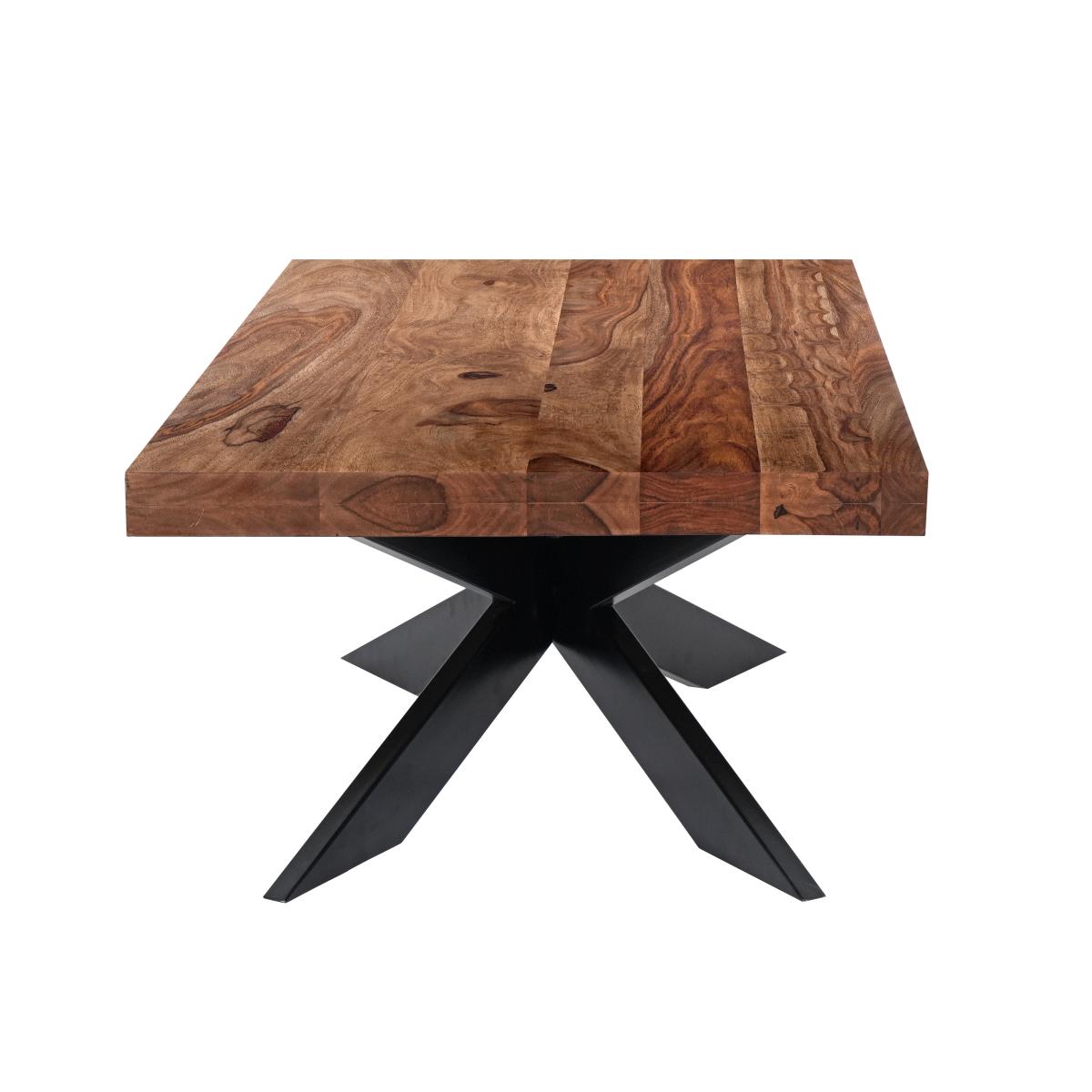 * Solid wood frame * Metal legs * Natural wood finish * Modern design A fusion of rustic charm and industrial edge, the logan coffee table makes a striking focal point in any living room. Crafted from solid Sheesham wood, the natural grain adds warmth and depth, while the bold black metal X-frame legs introduce a contemporary contrast.