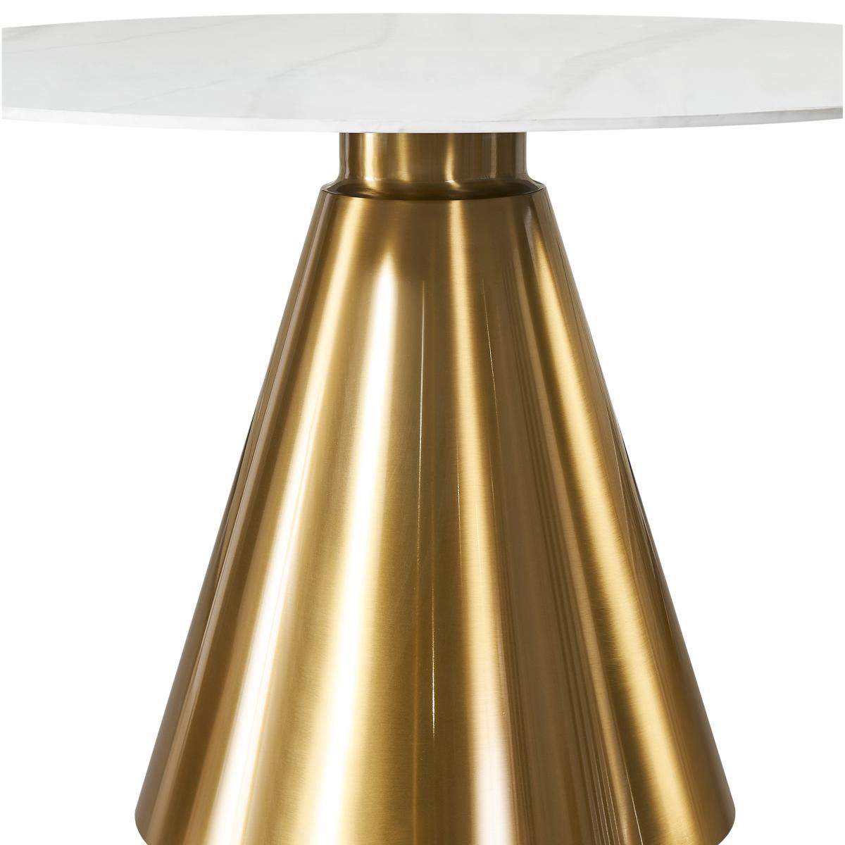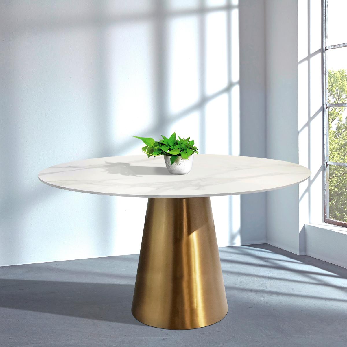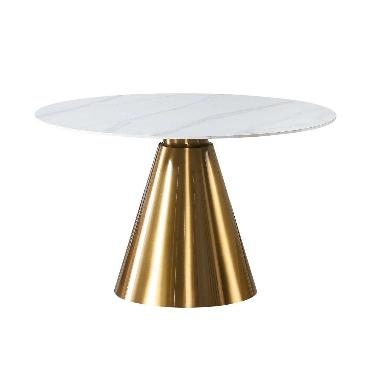 I love this table because of its bold, contemporary design that makes a real statement without overwhelming a space. The combination of the white marble top and the gold base adds a touch of luxe that works particularly well in modern, minimalist interiors or elegant urban settings. It’s versatile enough to pair with various chair styles, from sleek metal to upholstered options, and looks especially striking with neutral or monochrome colour schemes. Practical styling tips include balancing the opulence with simple tableware or greenery, like a small plant or understated centrepiece, to keep the focus on the striking design. It’s perfect for creating a chic dining area that’s both functional and visually impactful.