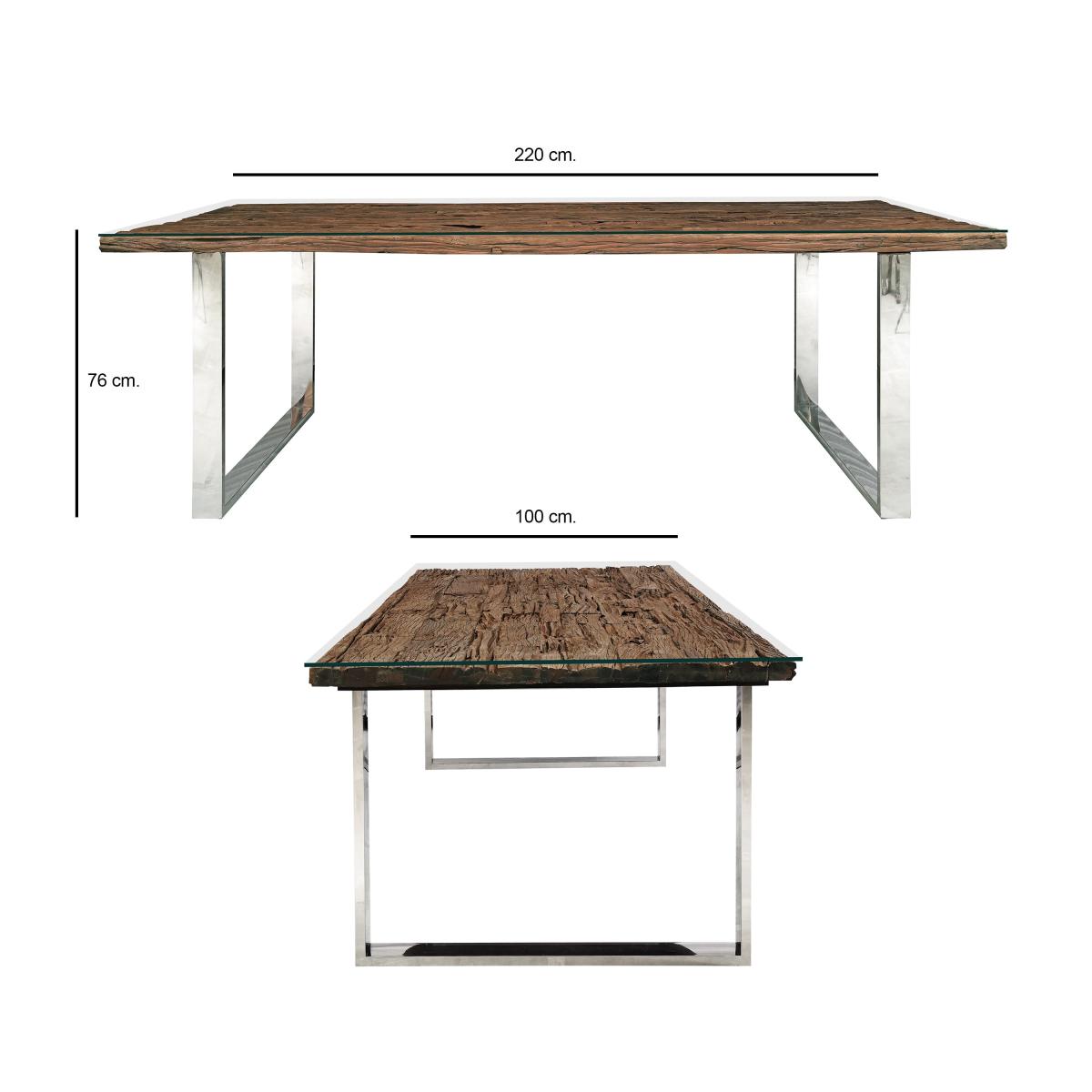 * Seats up to 8 people* Made from reclaimed sleeper wood* Polished stainless steel legs for stability* Industrial-chic look The Indus Valley Railway Sleeper 8 Seater Dining Table combines rustic charm with modern design. Crafted from solid reclaimed sleeper wood, each plank boasts a unique texture, while polished stainless steel legs add an industrial touch. This table comfortably seats eight, promising stability and visual appeal that seamlessly integrates into your decor. Please note we are unable to deliver this item to Northern Ireland.
