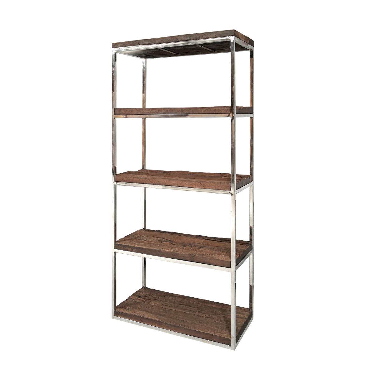 * Railway Sleeper & Stainless Steel frame Shelf Unit* Industrial-inspired design* 5 shelves for storage* Easy to build* Matching furniture available* Upgrade your living space with this contemporary shelving unit* Part of a larger furniture collection This Indus Valley Railway Sleeper Shelf Unit combines the rustic charm of railway sleeper wood with a sleek stainless steel frame. With its industrial-inspired design and five spacious shelves, it's both stylish and practical. Complete your living space with coordinating pieces from the collection, such as coffee tables, side tables, or TV stands. Please note we are unable to deliver this item to Northern Ireland.