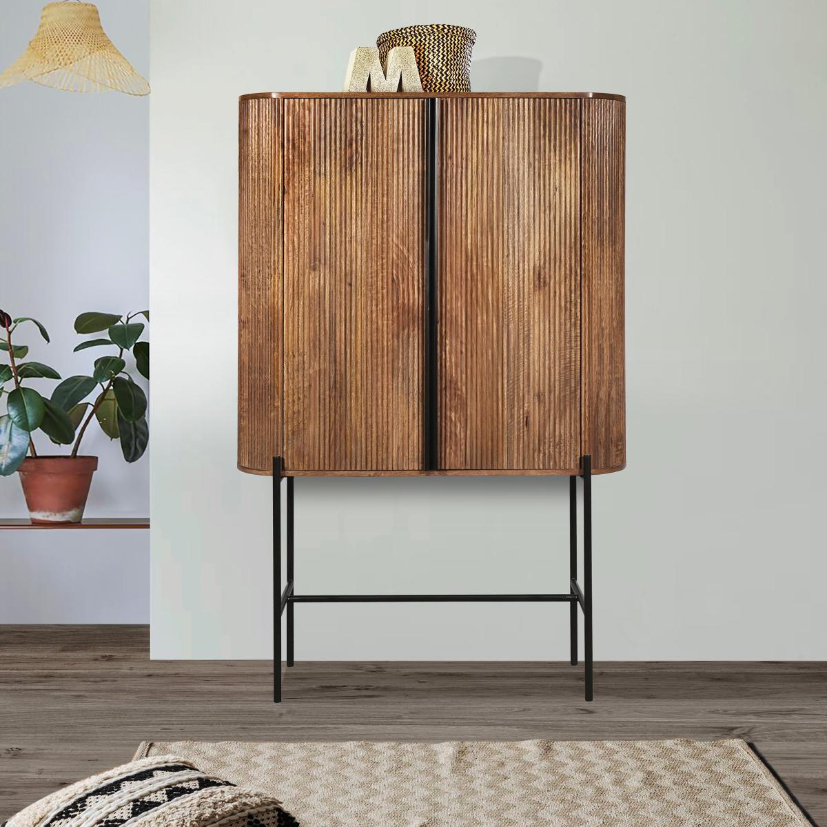 * Mango wood construction* Storage cupboard with ribbed detail design* Features Zen oval shape with a ribbed design* Natural and black iron legs for a nice look The Indus Valley Zen High Sideboard, constructed from mango wood, features a distinctive ribbed detail design and is finished with natural and black iron legs, adding a touch of elegance to your living space while providing ample storage within its cupboard. Please note we are unable to deliver this item to Northern Ireland.