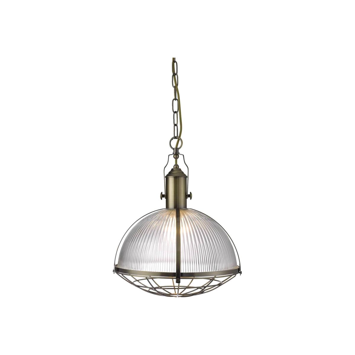 Industrial 1 Light Ceiling Pendant Antique Brass, Glass, E27 - Antique Brass