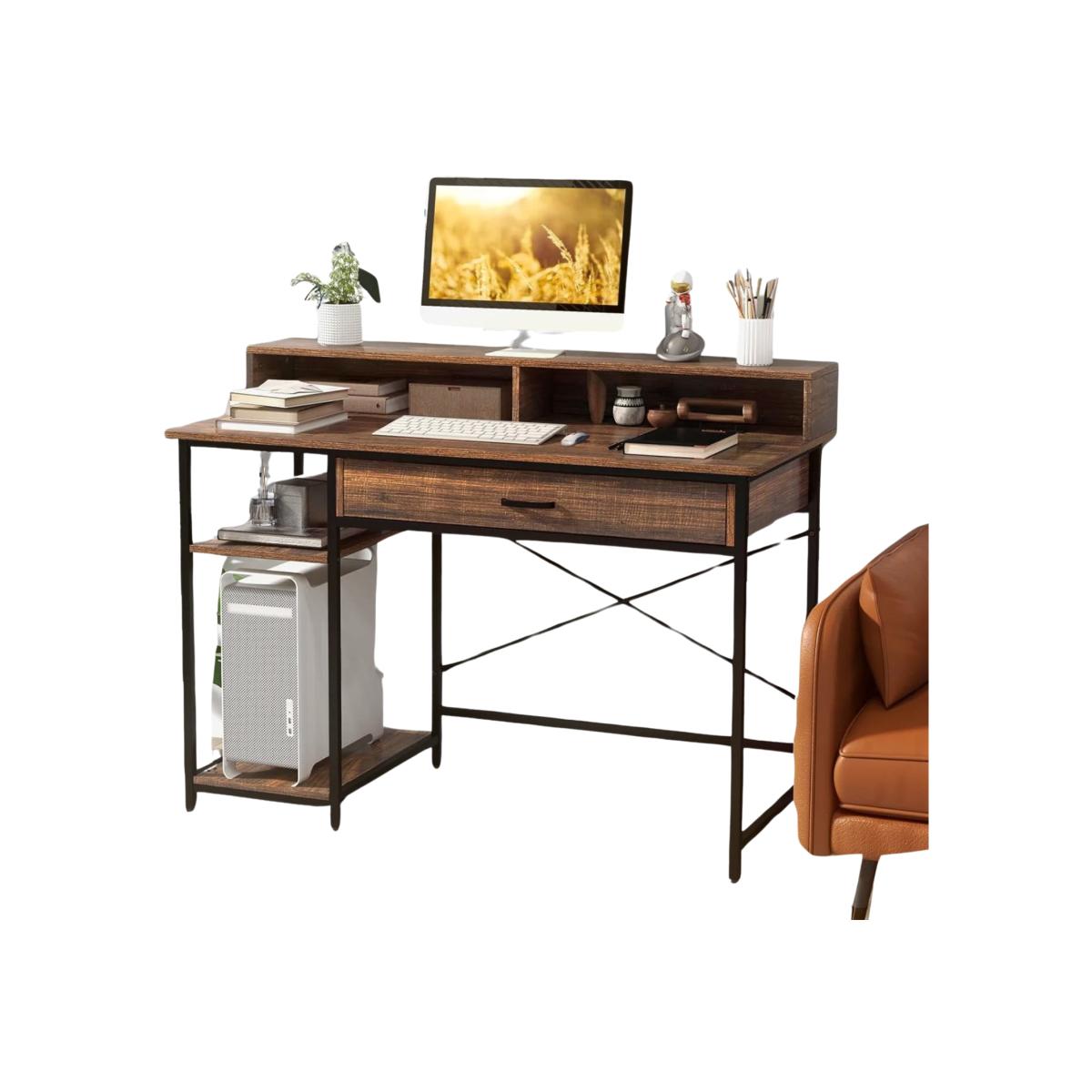 The large tabletop provides ample space to accommodate your laptop, desk lamp, books, and other office essentials. A neatly organized desktop helps improve focus and efficiency. Featuring two open shelves, this desk offers convenient storage for various items, allowing you to keep everything within easy reach. The shelves can also be removed to create additional space for a computer tower or larger items. Constructed with heavy-duty metal tubes and a stable triangular frame, this desk offers reliable support. Reinforced crossbars enhance stability, and adjustable feet ensure balance on uneven floors. With its industrial look, this desk is a stylish addition to any living room, bedroom, study, or office. It can be used as a computer desk, writing desk, vanity, or gaming table. Thanks to detailed instructions and included accessories, assembling the desk is effortless. The smooth, waterproof surface also makes cleaning quick and easy.