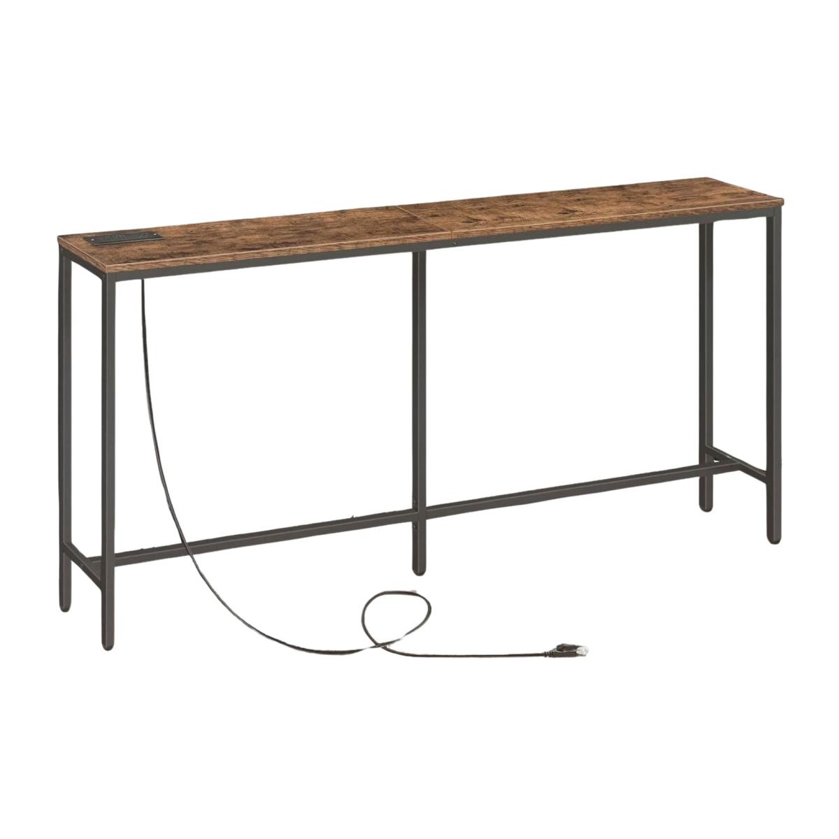 Our sofa table comes equipped with 2 plug outlets, 2 USB ports, and a 59" power cord, providing ample charging options for your devices. The table top panel is rotatable, allowing you to position the power strip as needed, making it perfect for your mobile phone, laptop, lamps, and more. This narrow console table serves as a versatile piece of furniture, suitable for various spaces including the living room, bedroom, dining room, study, foyer, and office. Its retro and elegant features add a touch of sophistication to any room. Crafted from high-quality P2 particleboard and a sturdy metal frame, this console table boasts excellent load-bearing capacity, with the top capable of holding up to 220 lbs. Adjustable feet and an anti-tipping device are included for stability and floor protection. This slim and compact console table is ideal for tight spaces such as apartments, dorms, and smaller rooms. It provides a practical storage solution without compromising on style. With numbered accessories, detailed instructions, and assembly tools included, assembling this entryway table is a breeze. Plus, the high-quality tabletop can be easily cleaned with just a damp cloth, ensuring effortless maintenance.