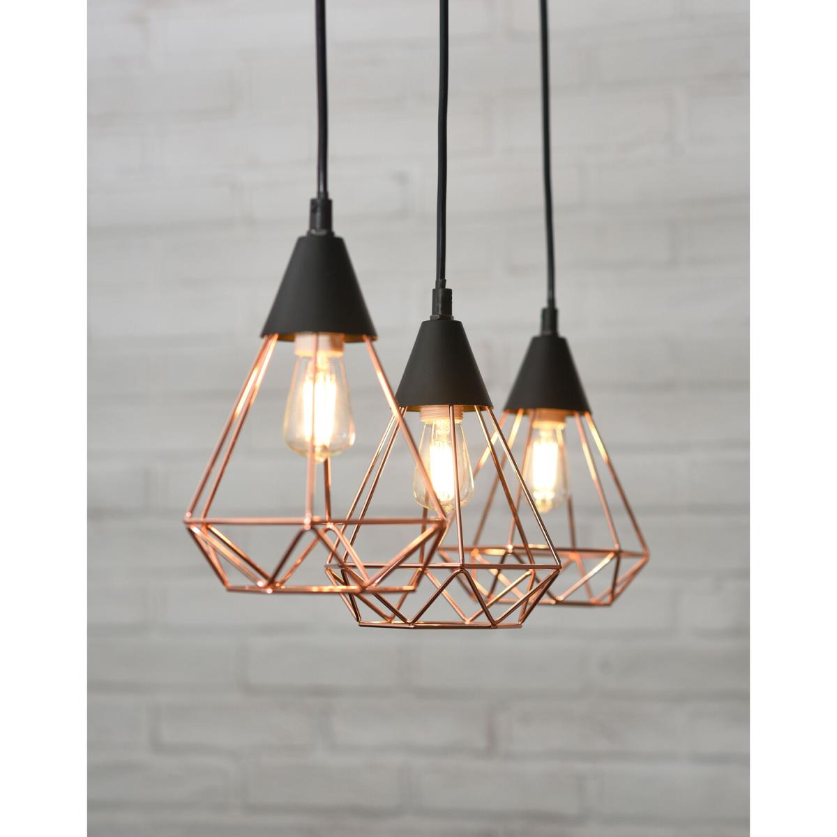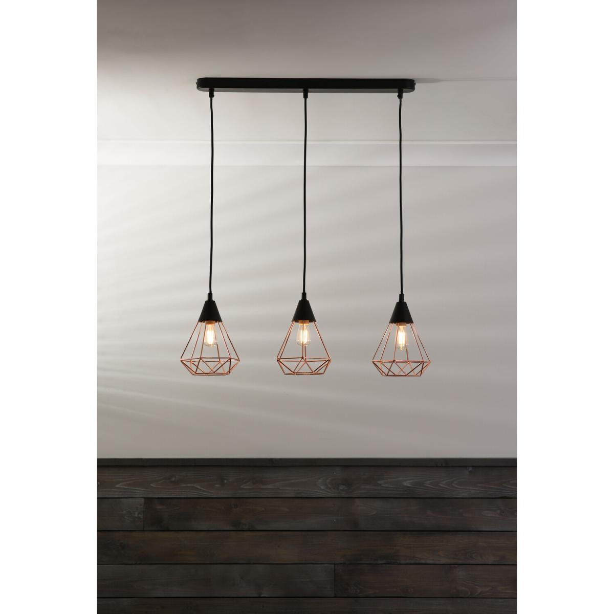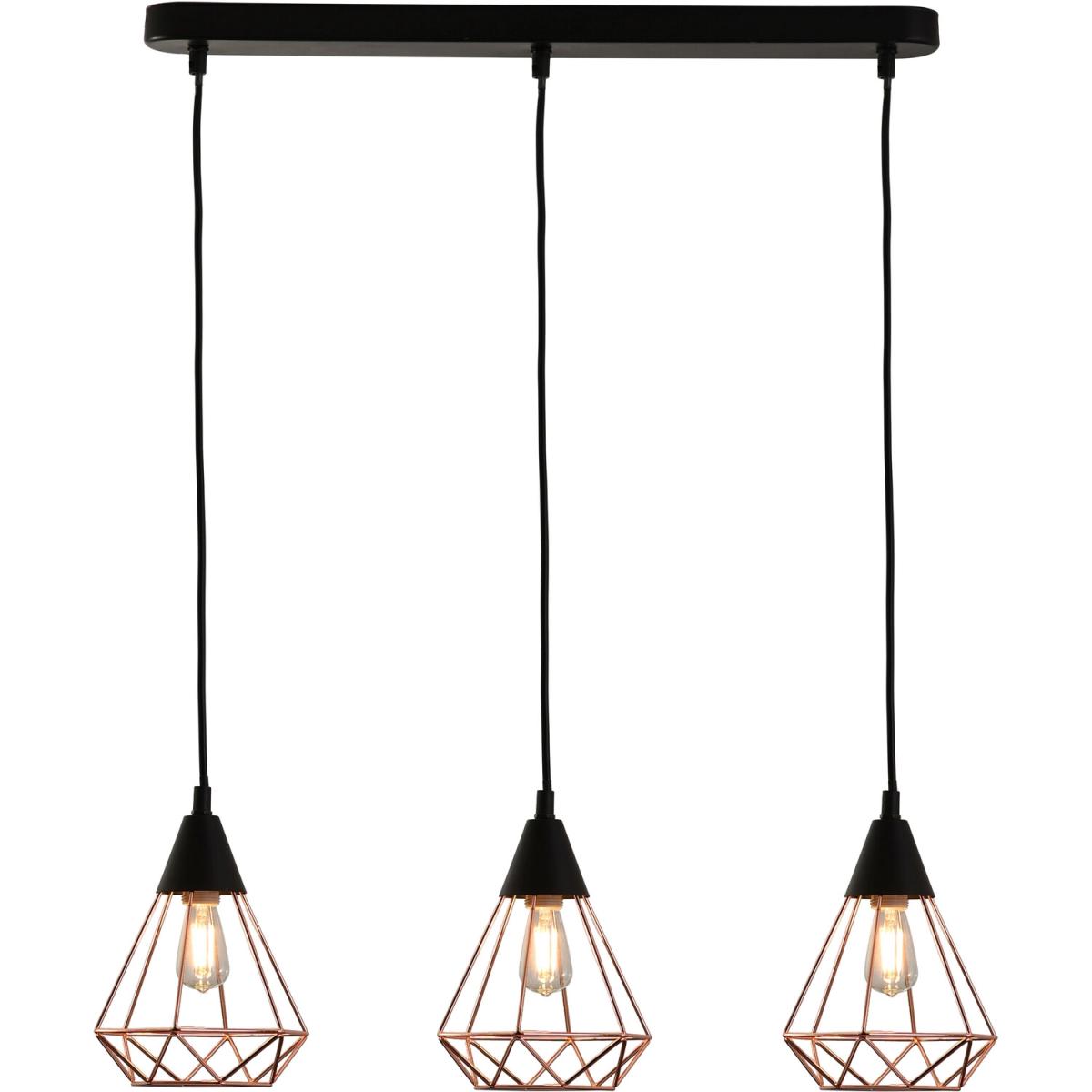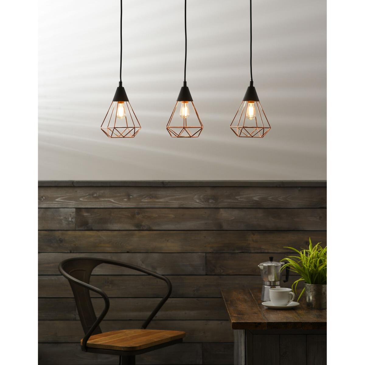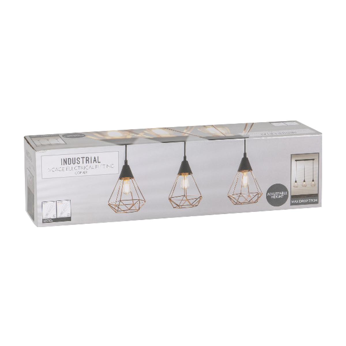 This Industrial 3 Cage Electrical Fitting features open wire copper cages spread along a matte black pole, encapsulating candle-shaped bulbs to create an attractive urban lighting solution. With an adjustable drop length, these antique metal lights are perfect for placing over your kitchen counter or dining table to illuminate your room with a chic glow.