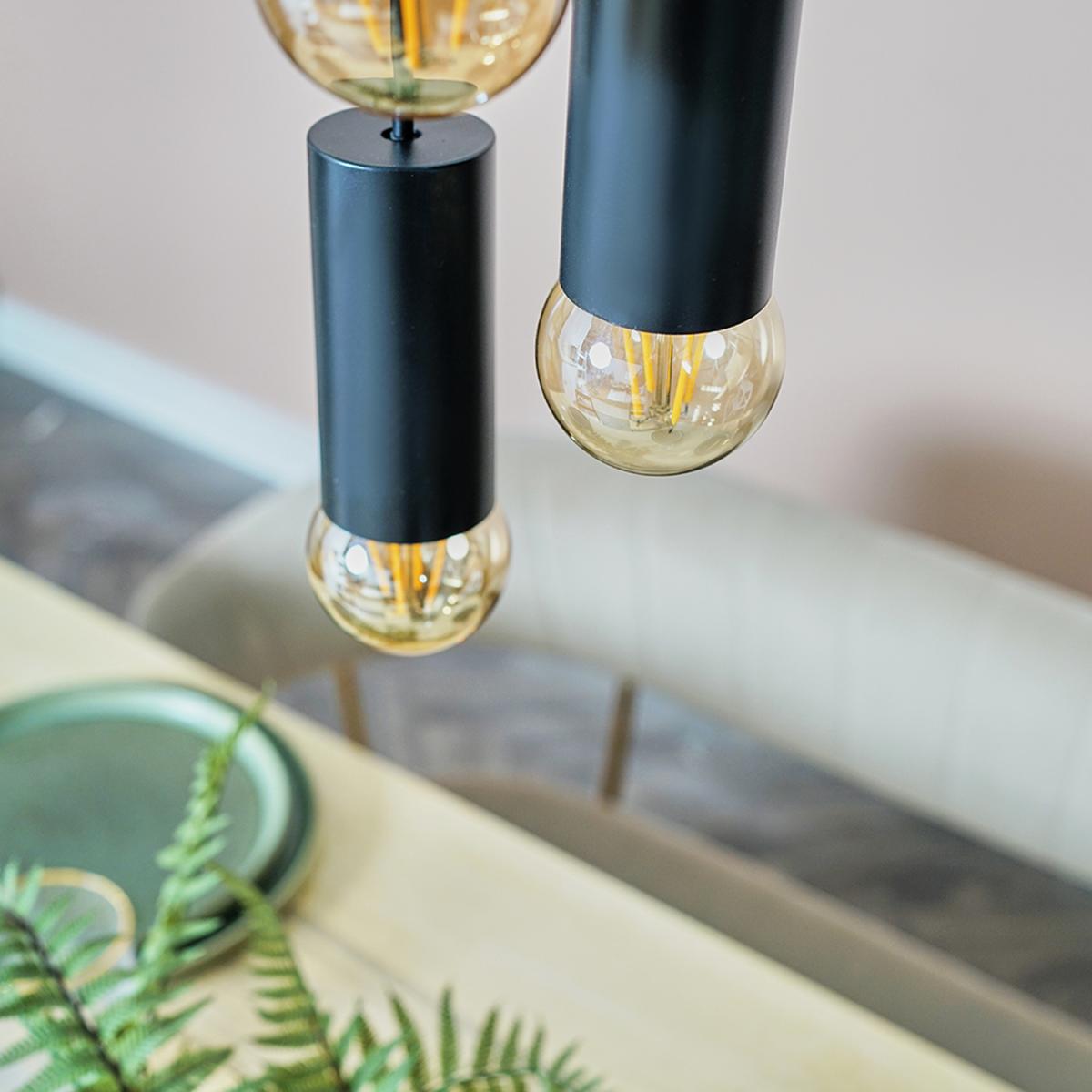 I really like this five-way matte black pendant as it adds a contemporary, industrial touch to any space. It works particularly well in open-plan kitchens, living zones, or dining areas where a statement lighting piece is needed. The black finish keeps it versatile, pairing nicely with minimalist, urban, or even Scandi interiors when combined with natural textures like wood or concrete. For styling, consider hanging it over a dining table or kitchen island, and play with different bulb shapes or filament bulbs for added warmth and character. It’s also wise to keep the cords at varying lengths for a more dynamic look or uniform for a sleek, structured appearance.