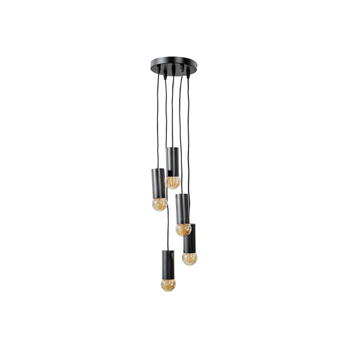 Industrial 5 Way Matt Black Multi Drop Ceiling Pendant Light Fitting - Black