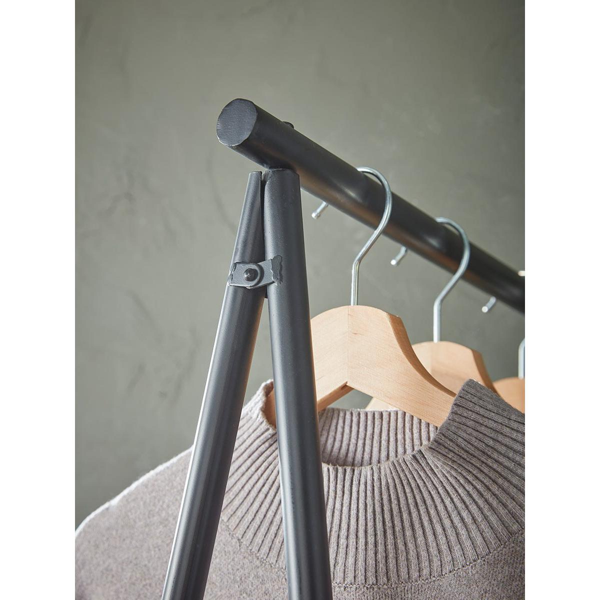 A statement clothes rail with refreshingly simple lines, which is perfect for use in tight hallways or to add helpful hanging space in a smaller guest bedroom. This A-framed hanging rack is made from powder coated steel and, when wall mounted, features a simple hanging rail and lower shelf.