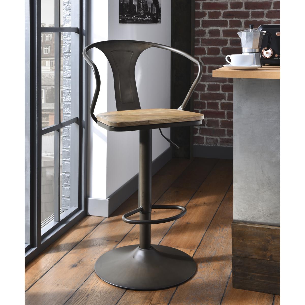 A beautiful addition to your home, this Industrial Iron Bar Chair features a modern industrial design that looks fantastic in any room. Manufactured from iron and wood, this stool is designed with an adjustable seat height, swivel function, and a comfortable back support. Whether you place it in your kitchen or at-home bar, this stool adds a stylish look to your surroundings.