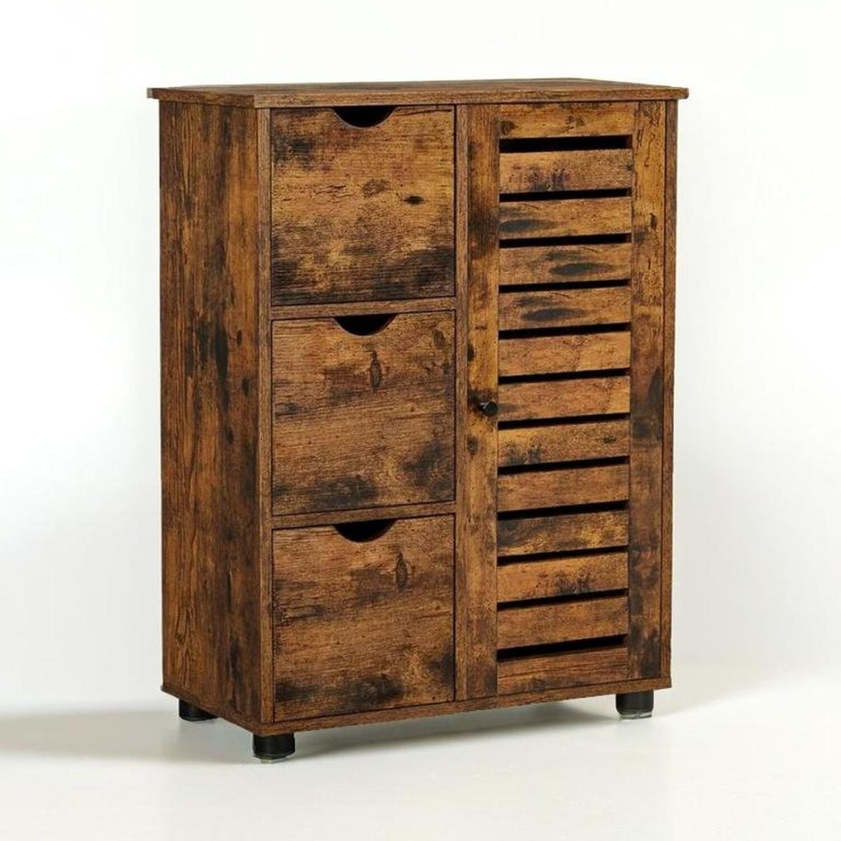 This storage cabinet offers ample space to keep all your essential bathroom supplies within easy reach, whether you need a towel after a shower or more toilet paper. With 3 drawers and 3 compartments behind a door, it combines practicality with a charming vintage touch, making it a standout piece in any bathroom. Crafted from high-strength particleboard for durability, it includes well-made details that enhance stability, along with an anti-tip kit for added safety, particularly around children. For efficient storage of items of different sizes, the cabinet features 2 height-adjustable shelves behind the door, maximizing every centimeter of space.