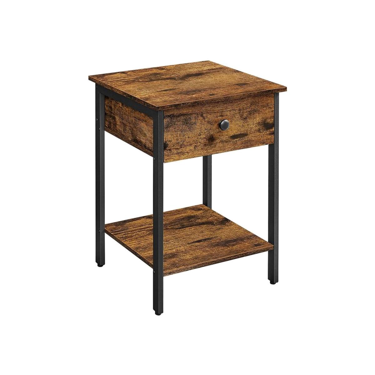 With its clean, classic design and industrial flair, this side table fits seamlessly beside your bed, next to the sofa, or in the hallway - adding charm without overwhelming the space. Keep your glasses within reach on the tabletop, tuck your passport or valuables into the roomy drawer, and place your laptop or books on the lower shelf-organised and ready when you need them. Assembly won't keep you up. With a straightforward design and clear, illustrated instructions, putting this nightstand together is quick and stress-free. Uneven floor, no problem. Adjustable feet ensure the table stays stable and your items stay put - no wobbling, no spills. All parts are clearly labelled and easy to handle, so you can have your stylish new table ready in no time.