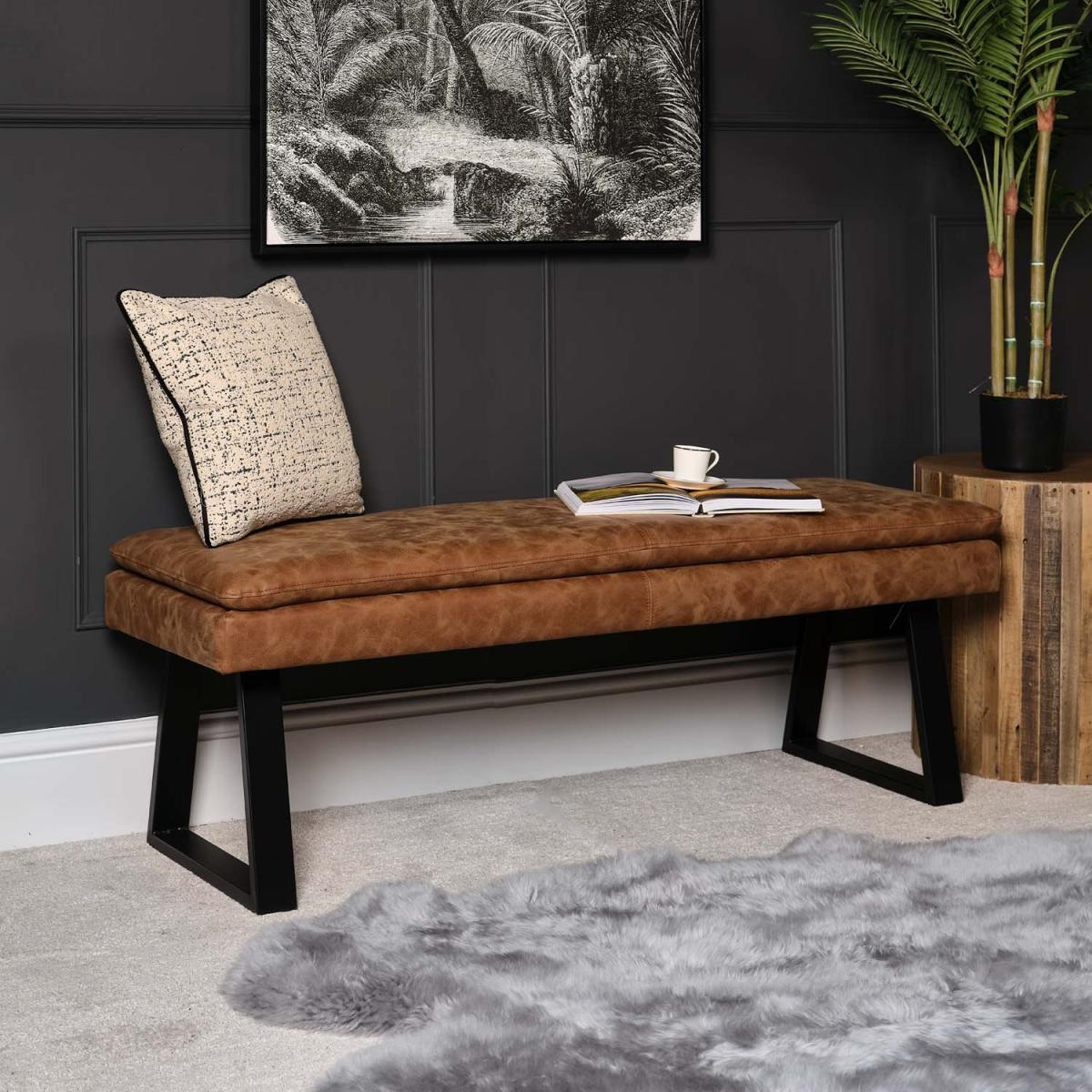 The stylish Industrial Tan Faux Leather Padded Bench Seat is ideal for family dining. A comfortable padded bench seat upholstered in faux leather, it is easy to clean. This is the perfect seating for fitting more people around a table, without crowding the table.