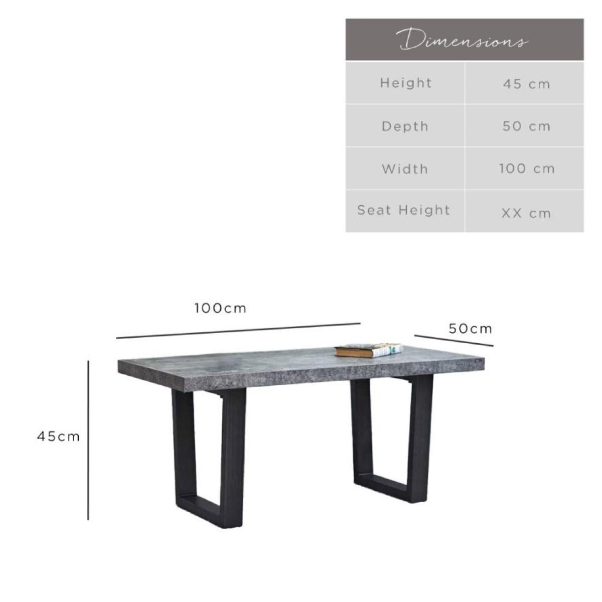 Featuring a faux concrete effect panelled top, the Industrial coffee table will bring some modern style into your living space. Its robust black metal legs is what inspired the name as it gives the table an industrious look and feel.