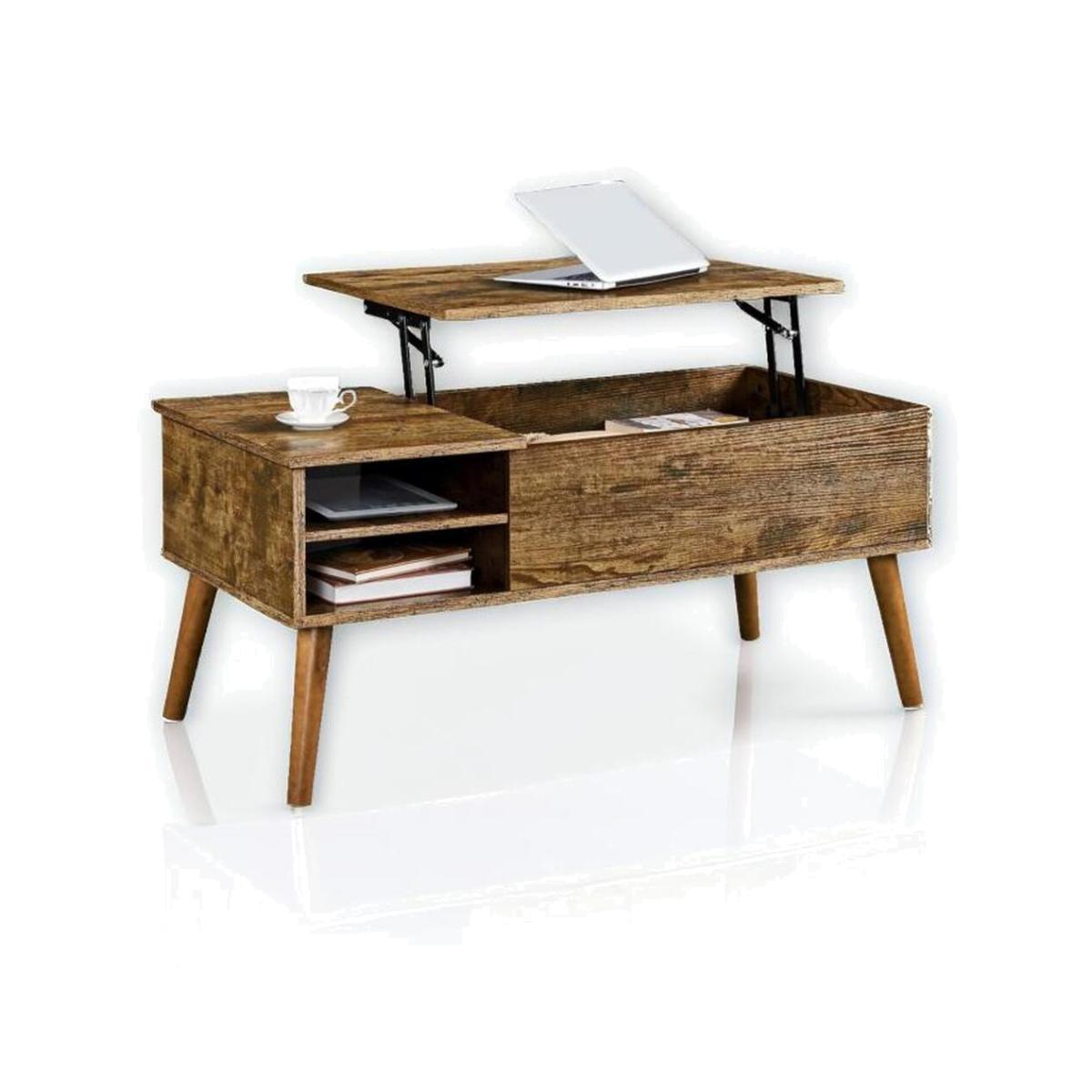 Industrial Coffee Table with Hidden Storage - Brown