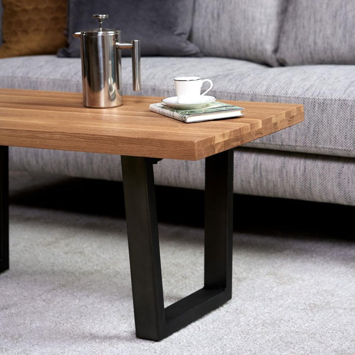 Bring some modern industrial styling into your living room with the Industrial coffee table. Featuring a paneled effect robust solid wood top making no two tables the same complete with dark grey wide metal legs. Team with the rest of the collection to complete the look. W100cm x D50cm x H45cm Simple self assembly