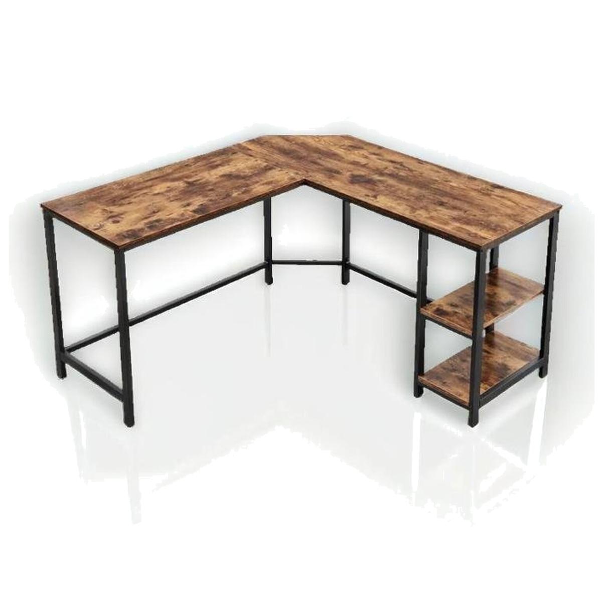 I’m a fan of this L-shaped corner desk for its solid, no-nonsense design and generous workspace. The brown, weathered finish paired with black metal framing gives it an industrial edge while remaining versatile enough to suit modern, Scandi or loft-style interiors. The open shelves are handy for stashing books or baskets, and the sturdy construction means you’ve got room for dual monitors or a laptop plus paperwork without wobble. To style, keep the desktop clutter-free: use a slim task lamp to define your workspace, add a small potted plant for a touch of green, and tuck cables into a simple tray beneath. On the shelving, mix storage boxes with a few decorative accents - this balances practicality with personality and keeps your home office looking sharp.