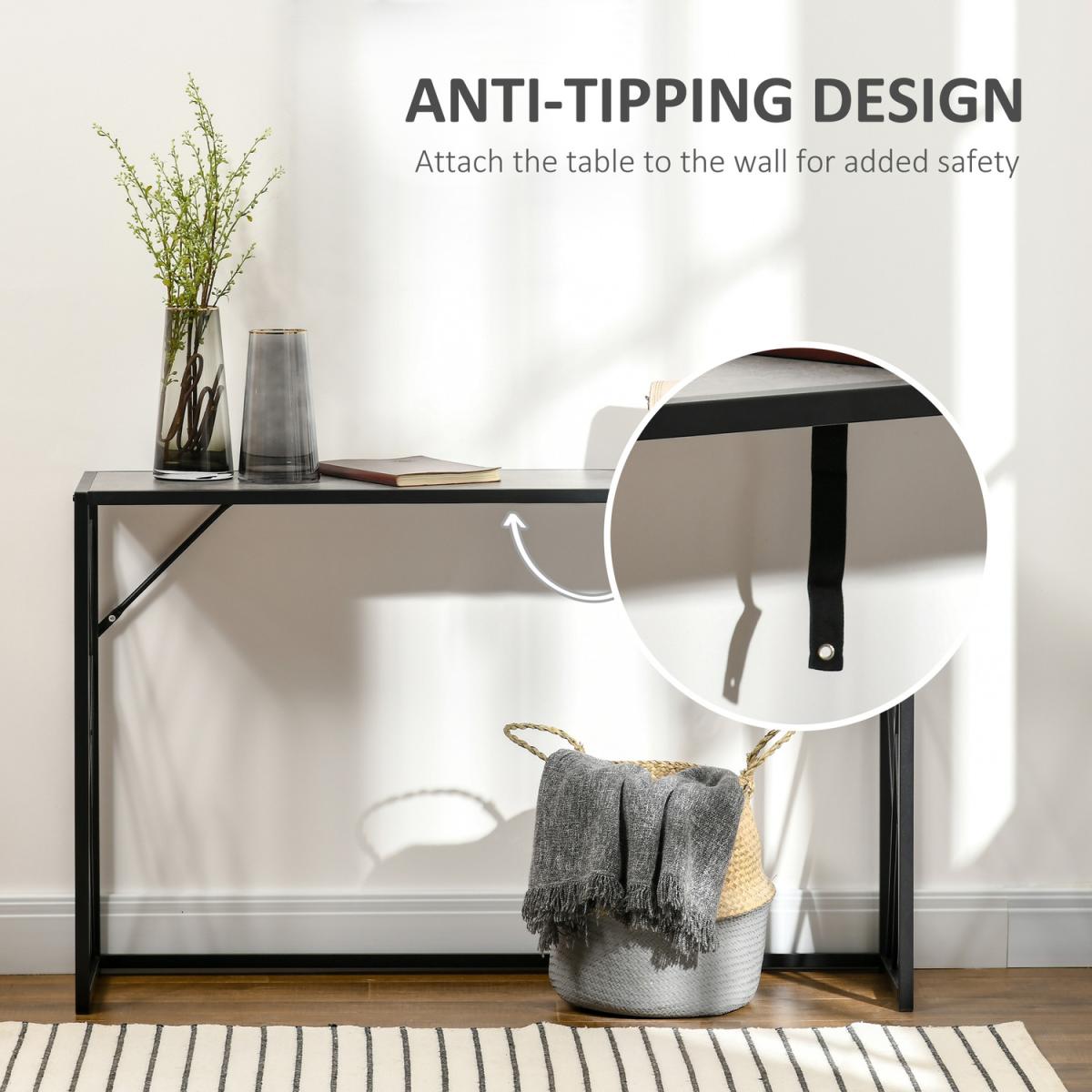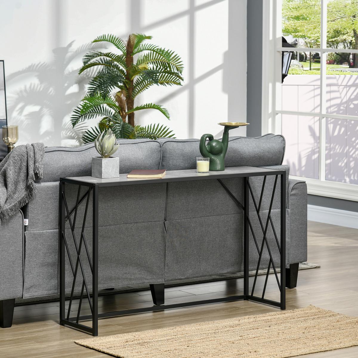 Blending style and storage together, this HOMCOM console table is a distinctive piece you'll love having at home. Our hallway table features a large desktop to display photos, ornaments, keys or earrings and the open space underneath for you to place several container box or shoes. Embrace industrial chic in your living room, bedroom, entryway and beyond with our behind sofa table.