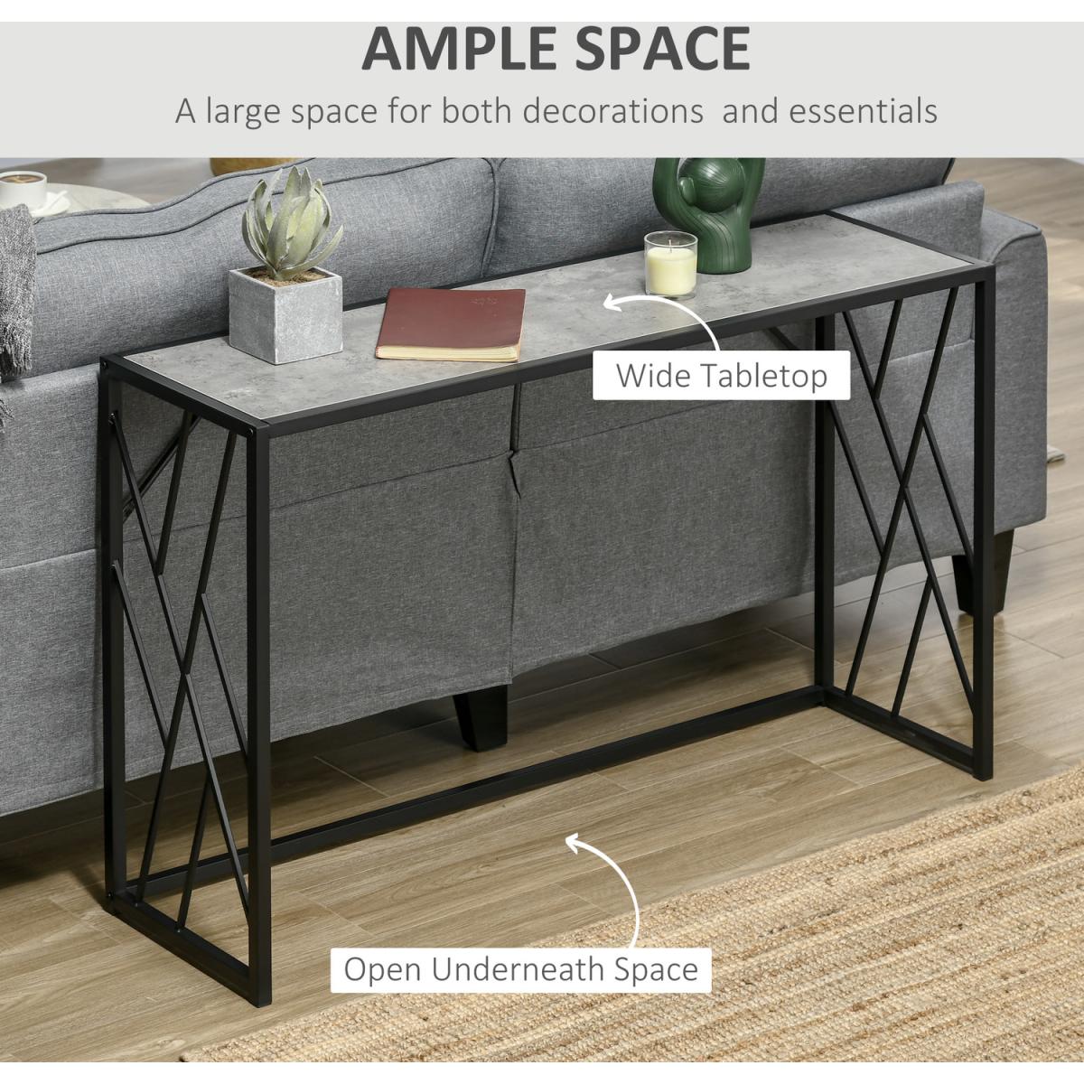 Industrial Console Table Couch Tables with Metal Frame for Entryway - Black Frame, Grey Top