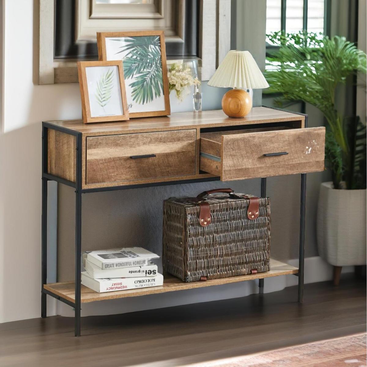Industrial Console Table With 2 Drawers - Brown / 29.5cm