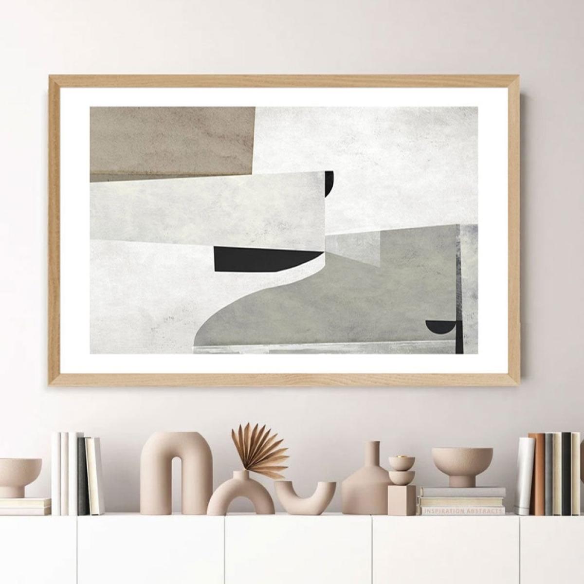 I love how this abstract print adds a modern, industrial edge to an interior. Its muted tones and geometric shapes work particularly well in contemporary or minimalist spaces, providing visual interest without becoming overwhelming. It’s versatile enough to be styled in a living room, office, or even a bedroom, especially when paired with raw materials like metal, concrete, or reclaimed wood. Practical styling tips include framing it in a simple, light-coloured frame to enhance its clean aesthetic or grouping it with other monochrome artworks for a cohesive gallery wall. Overall, it’s a great piece to bring a sophisticated yet understated pop of colour and design to any room.