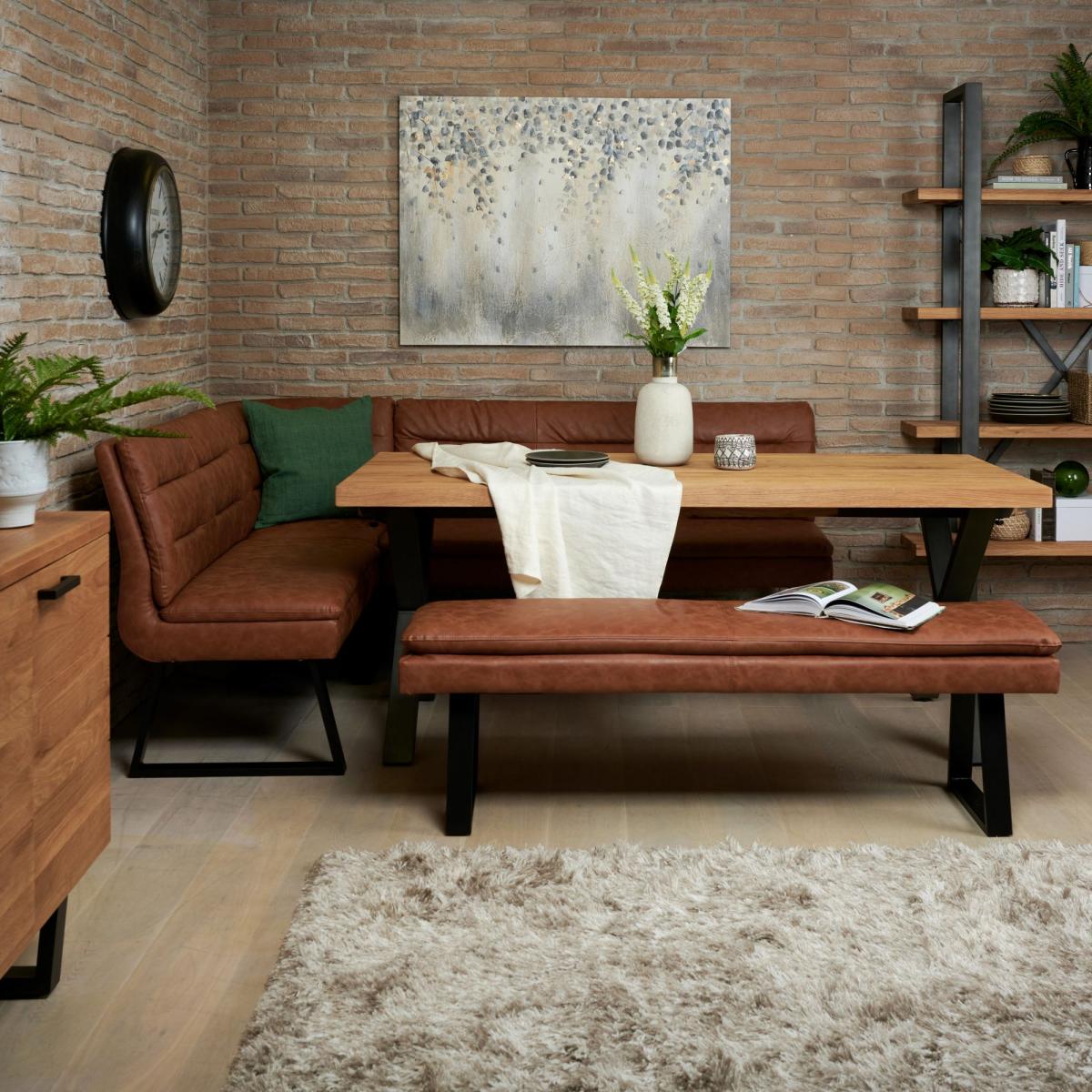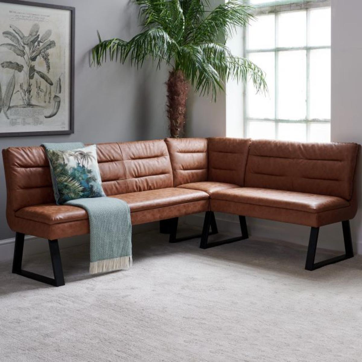 Dine in comfort with the Industrial Corner Bench. A stylish addition to any home, the tan corner dining bench can be constructed either way to fit your desired configuration. You can swap around Bench 1 and Bench 2 dependent on the layout of your room. This corner bench matches perfectly with the fully upholstered Industrial dining bench and is a great companion to any of our Industrial style dining tables such as Adelaide, Industrial or Industrial Faux Concrete.