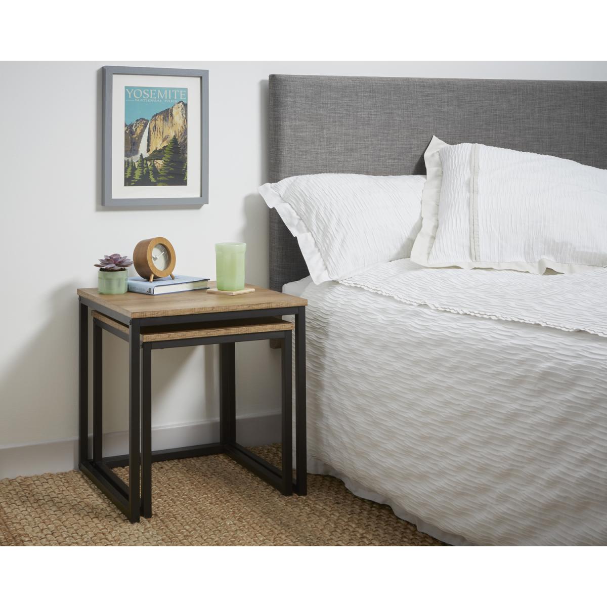 This Nest of Tables will give your bedroom or living room an industrial, rustic look. They nest nicely together and pull out for extra surface space to place items like laptops, coffee cups and books. The open design leaves your room looking spacious and modern and a plant on top can give your room a jungle feeling.