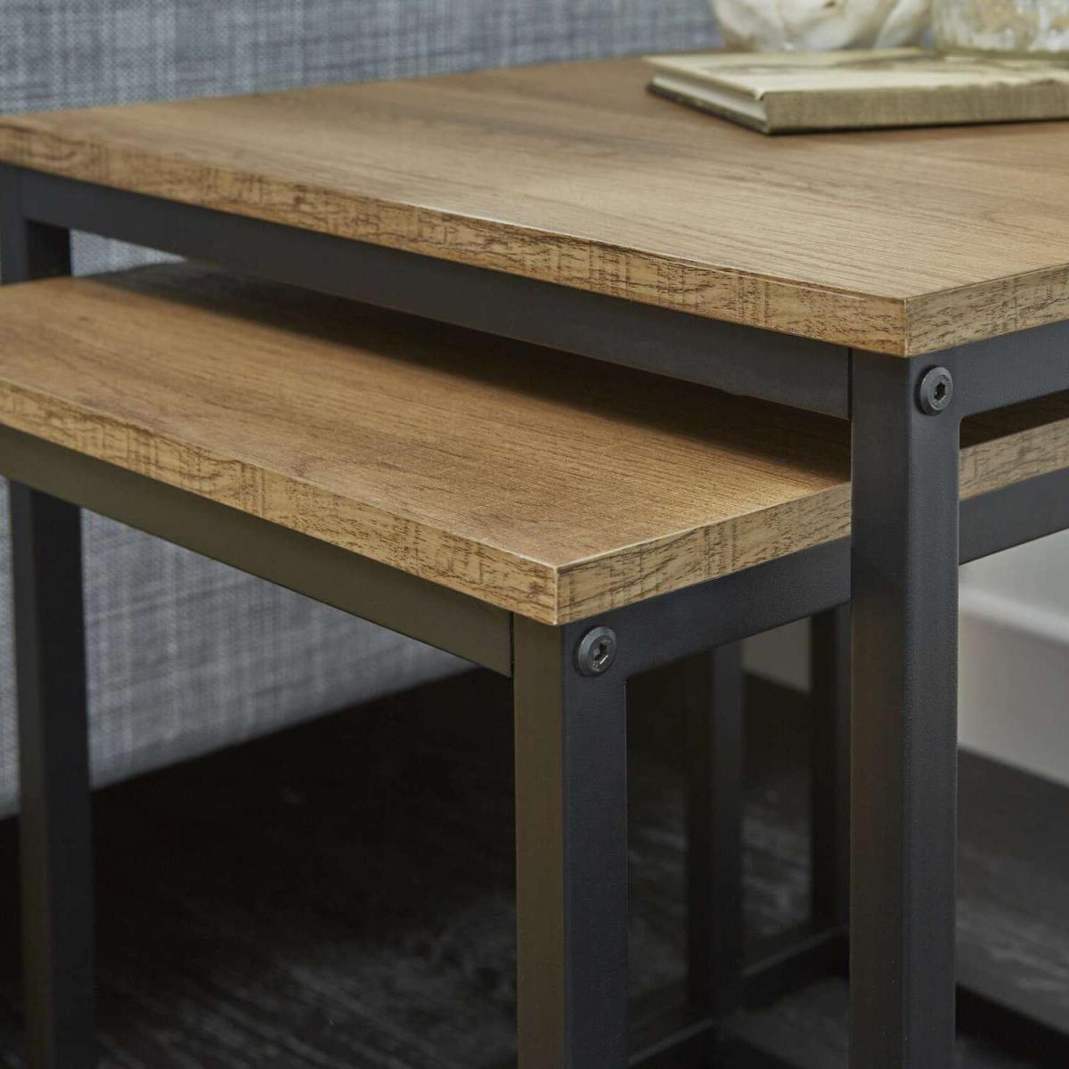 I really like this nest of tables because of its versatile industrial style, which can add both functionality and character to a variety of interiors. The combination of warm brown wood with the black metal frame makes it ideal for creating a rustic or urban aesthetic, and it works especially well in living rooms with neutral or monochrome palettes. Practical styling tips include stacking the smaller table underneath the larger one to save space, or using them separately to hold drinks, lamps, or decorative items. They’re perfect for adding flexibility to your seating area, whether for hosting friends or simply creating a cosy corner.