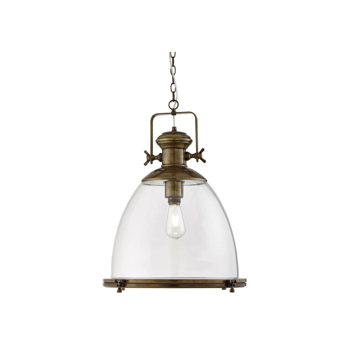 Industrial Dome Ceiling Pendant Antique Brass with Clear Glass Diffuser, E27 - Antique Brass