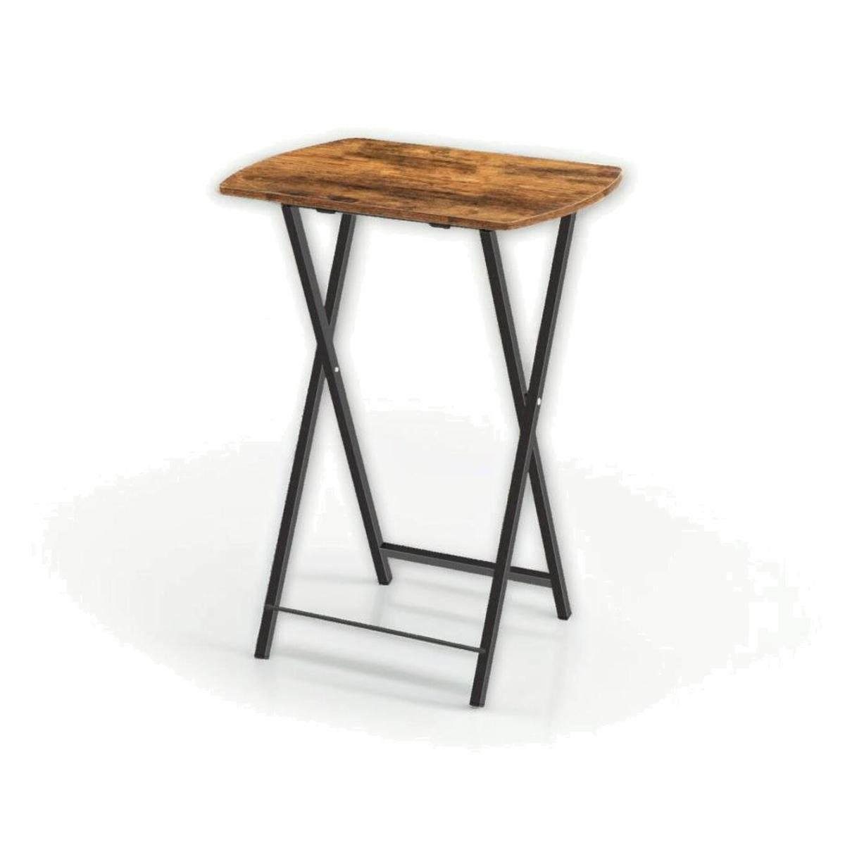 Introducing our latest in industrial design a folding TV tray that captures your attention with its charming retro style. If you've been looking for a TV tray with a sturdy and durable metal frame, our product is sure to meet all your requirements. The folding TV tables are the perfect companions for your couch. When you need more space in your house, simply fold them up and store them away!Measuring 48 x 36 x 66 cm (L x W x H), this side table offers ample room for your coffee, snacks, vase, and more. Its spacious enough to even accommodate your laptop.