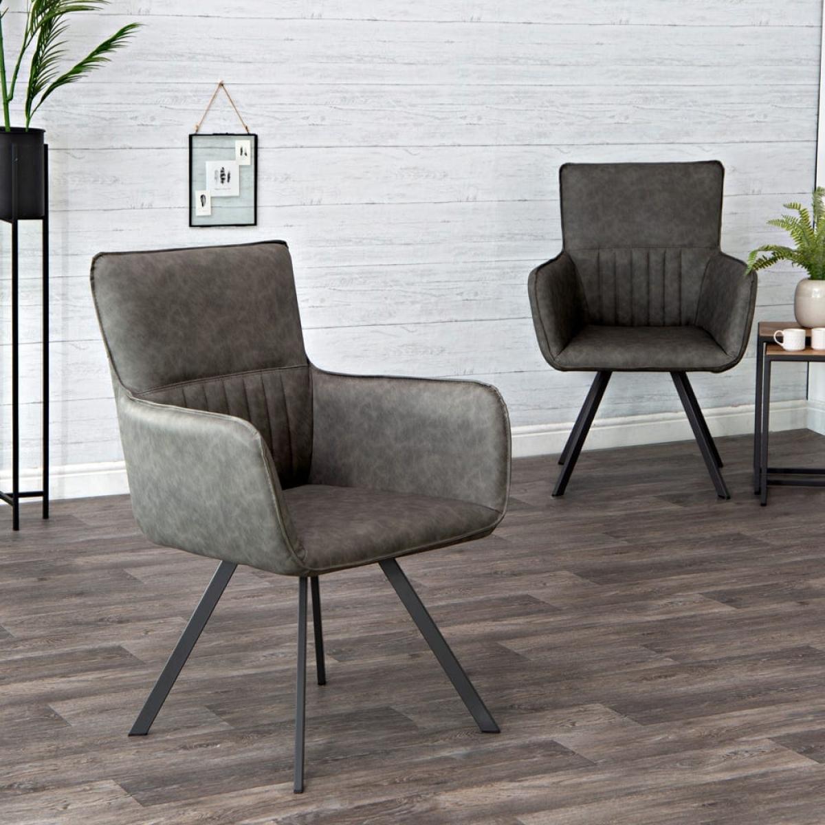 I love this grey carver because of its sleek, modern silhouette combined with its versatile colour. It works well in contemporary interiors that lean towards industrial or minimalist styles, but can also complement softer materials like wood or velvet to add a layer of textured contrast. Practical styling tips include pairing it with a statement side table or a built-in bookshelf for a cosy reading nook, or placing it as an accent piece in a neutral lounge to add subtle sophistication. Its practical shape and calming colour make it an easy addition to both living rooms and home offices, offering comfort without compromising on style.