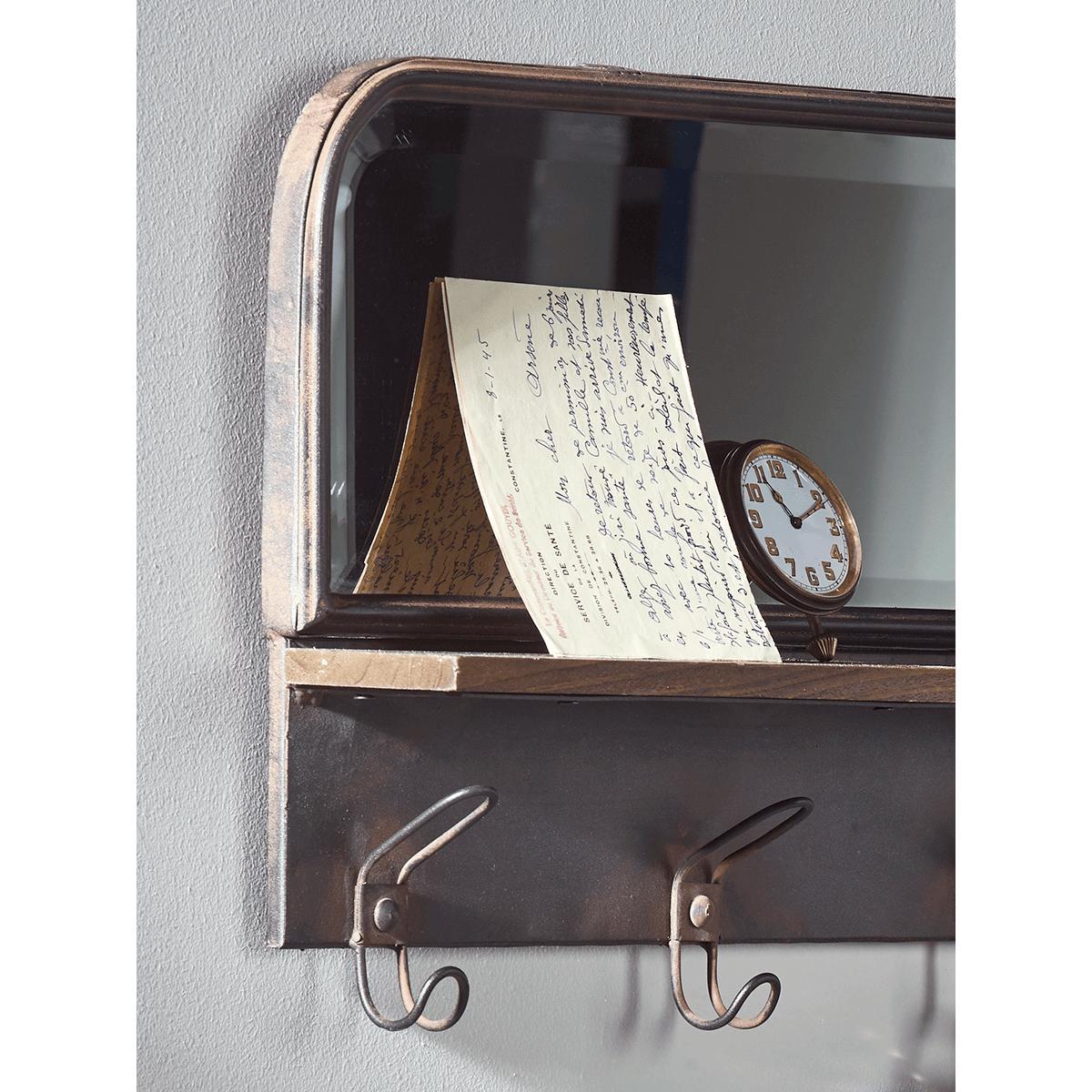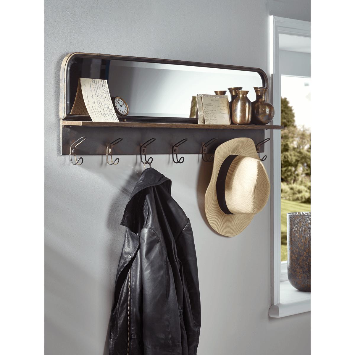 Perfect for your hallway or utility room, our vintage look hook rack has a narrow shelf for displaying decorative items and a wide, shallow mirror to add light to your living space. Inspired by industrial railway carriages, the metal frame has a burnished finish, while the seven useful double hooks each have an elegant, curved shape.