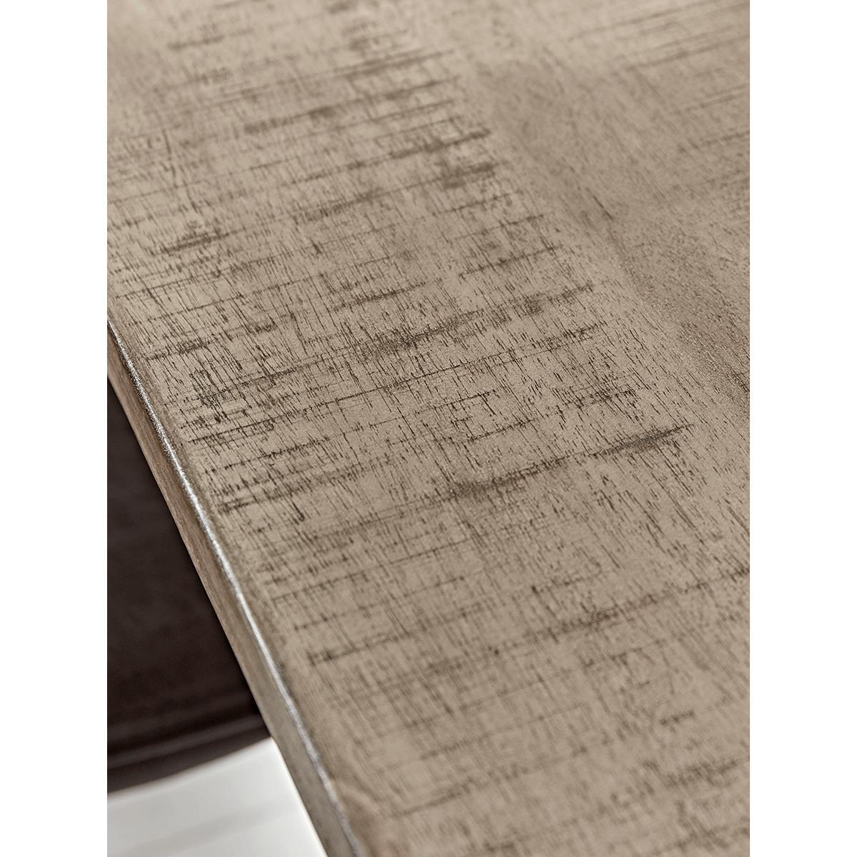 The top of our Industrial Iron Dining Table is crafted from a wonderful toned wood, with timber markings to give a industrial toned edge. Bold functional form is confirmed by rich toned metal frame legs, and the generous width and length which will easily seat six, will strike a contemporary punch in any interior.