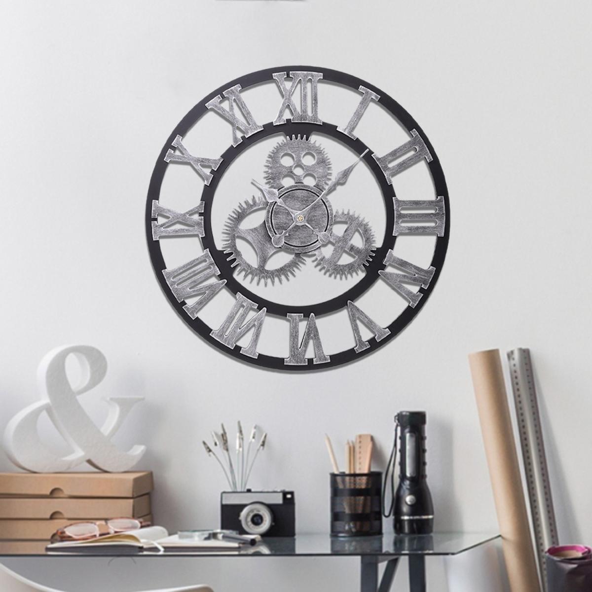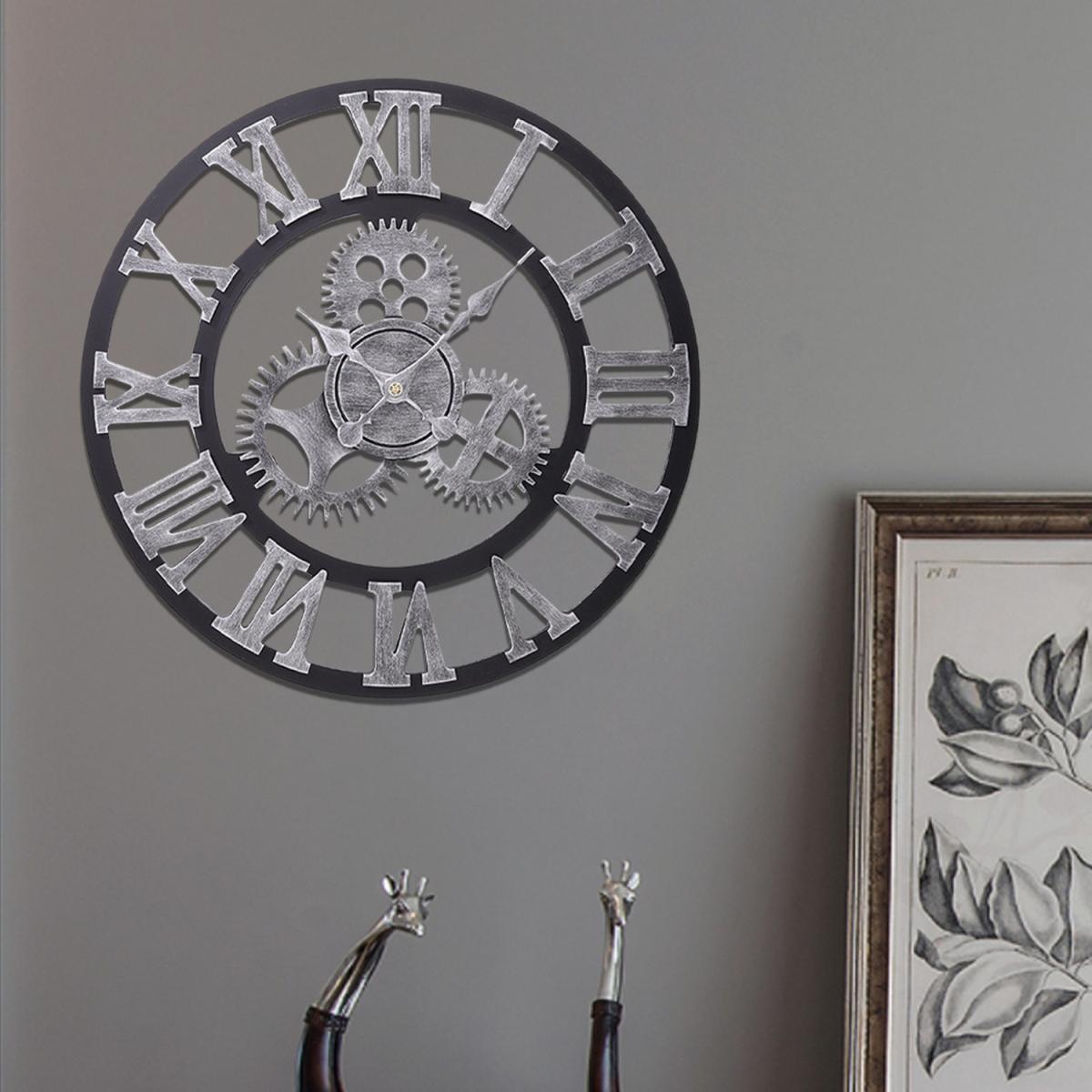 This large industrial wall clock is a fantastic statement piece for contemporary or urban-inspired interiors. I love its combination of sleek silver finish and the visible gear design, which adds a hint of mechanical interest without feeling bulky. It works particularly well in open-plan living spaces, loft apartments, or minimalist kitchens, where its size can really be appreciated. To style it effectively, consider pairing it with other metallic accents or raw textures like concrete or reclaimed wood for a cohesive look. When hanging, ensure it’s at eye level for maximum impact, and keep surrounding wall decor minimal to allow the clock to shine as a focal point.