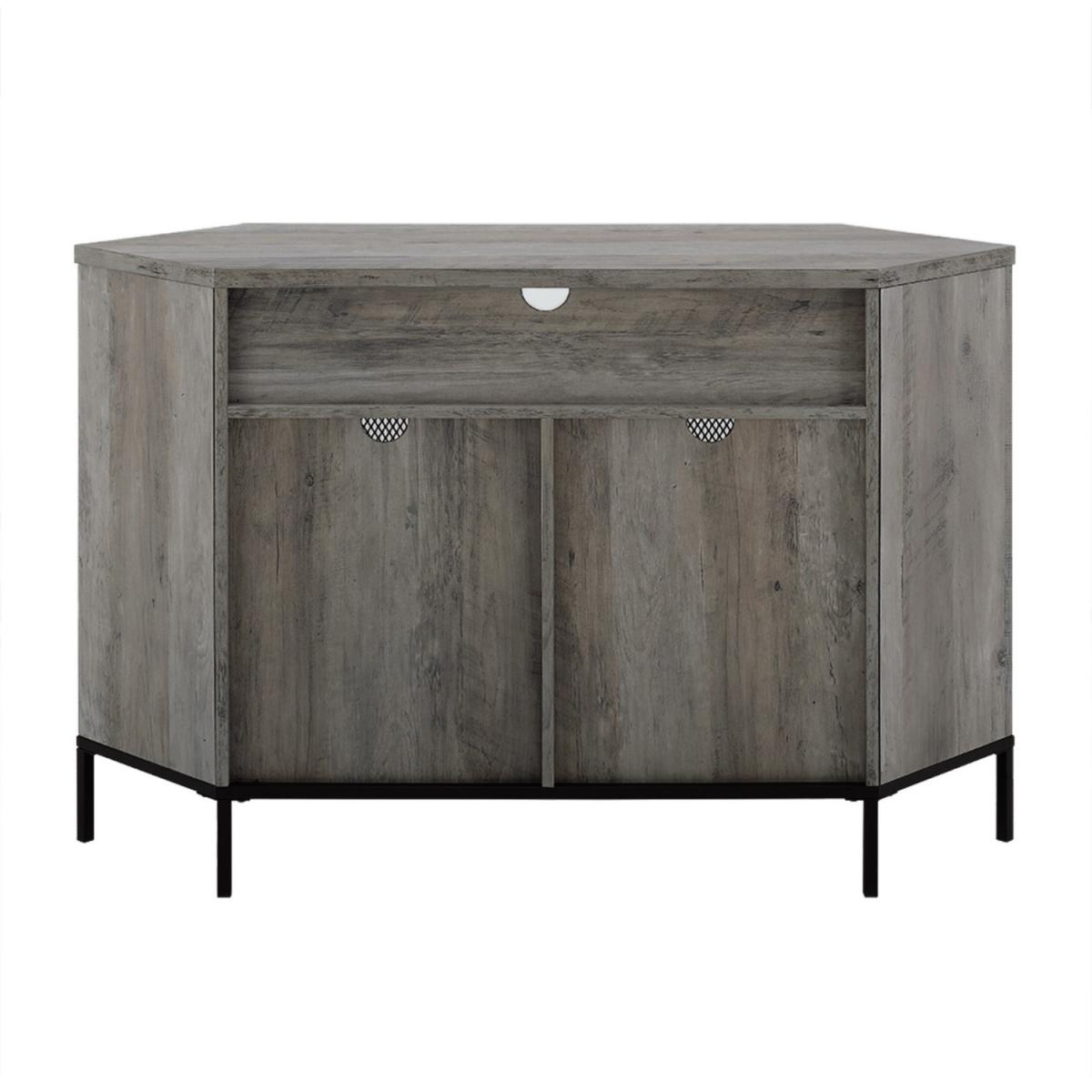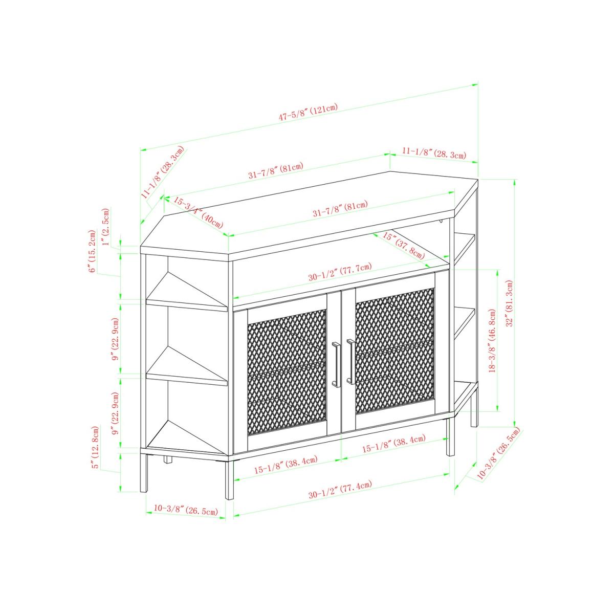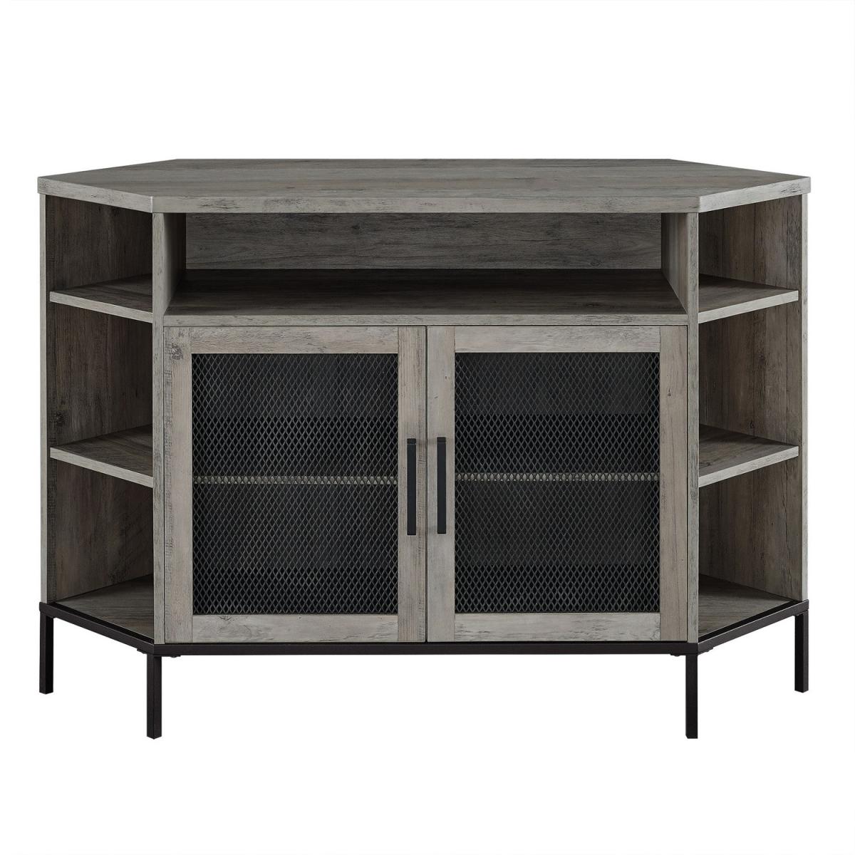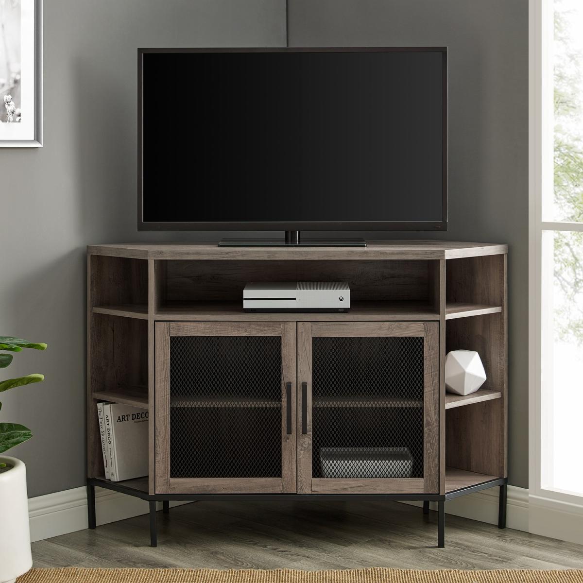 Shiny chrome metals don't own the future; smart geometric space-saving pieces do. That's why Kelly scooped up this hexa-cubby, industrial, corner TV stand. A dazzling display of unique, open and semi-closed storage winked at her as she browsed the web for the ideal entertainment console. One look at this metal-mesh door, multi-shelf, two-toned wonder had Kelly sold. She couldn't wait to pop it in her living room corner. Not to mention its wide top accommodates TVs up to 55”, so Kelly knew she had plenty of room to display all her favorite media components. Be like Kelly and welcome an innovative entertainment center into your home for maximum modern, intelligent design..