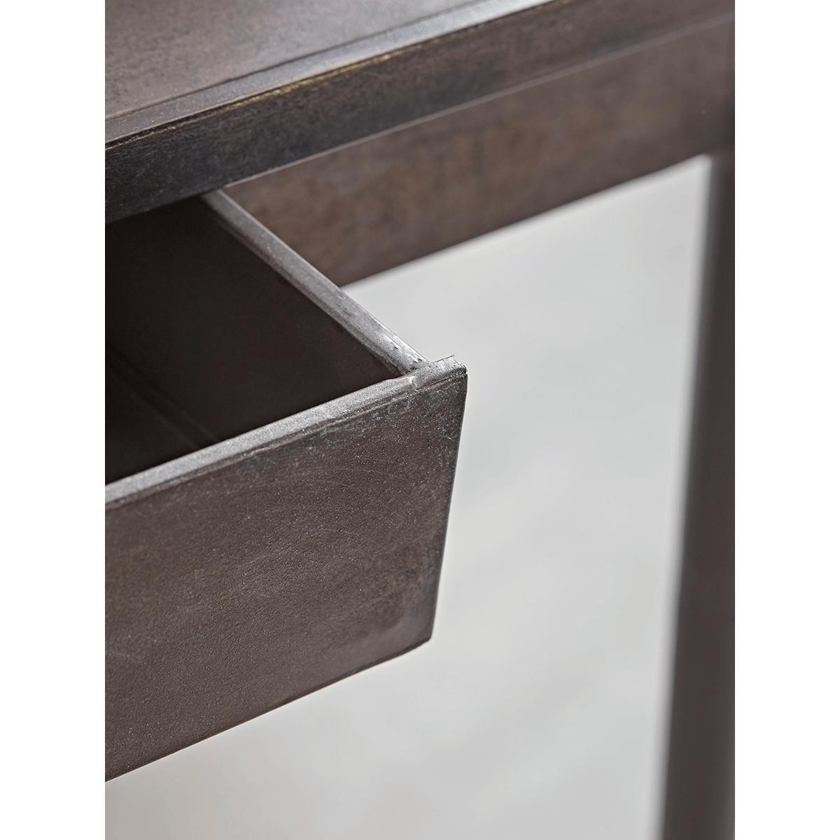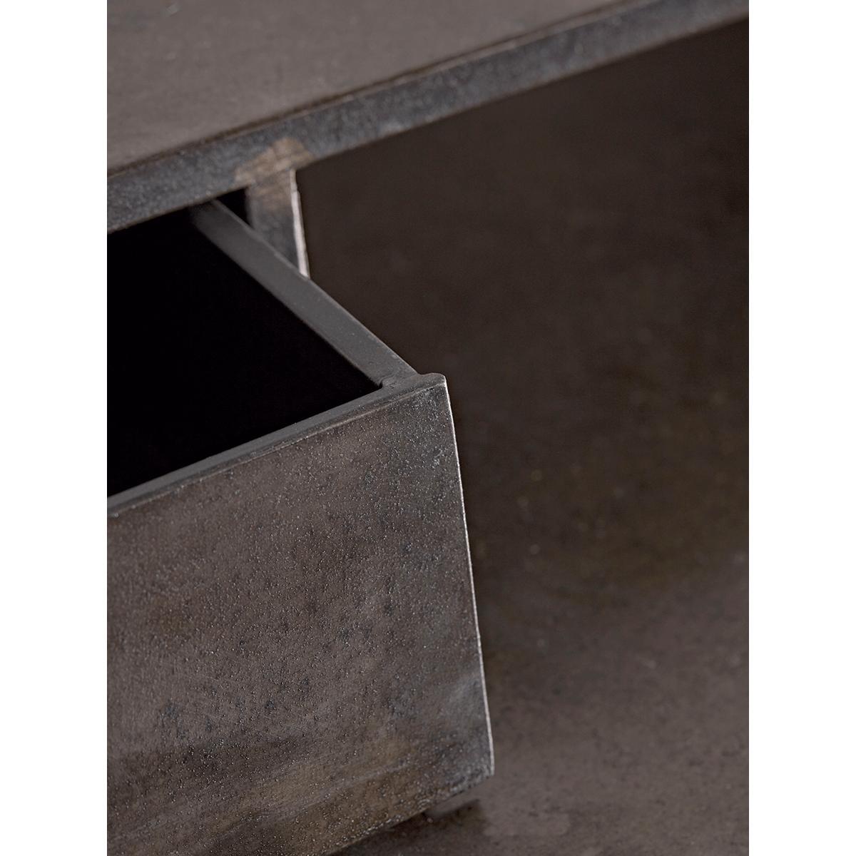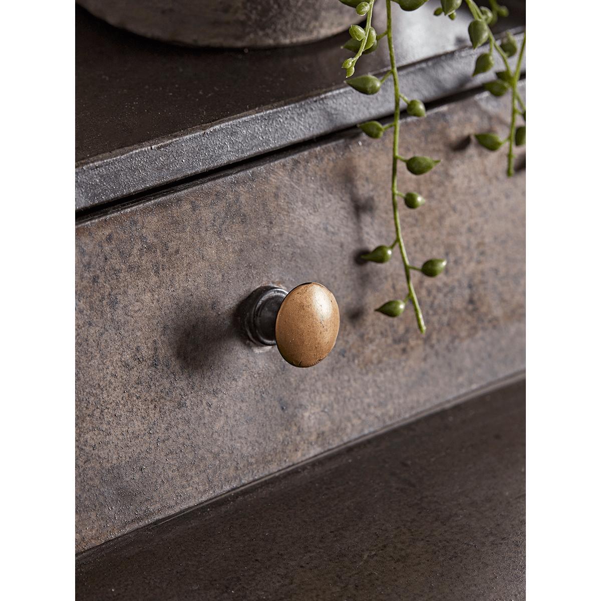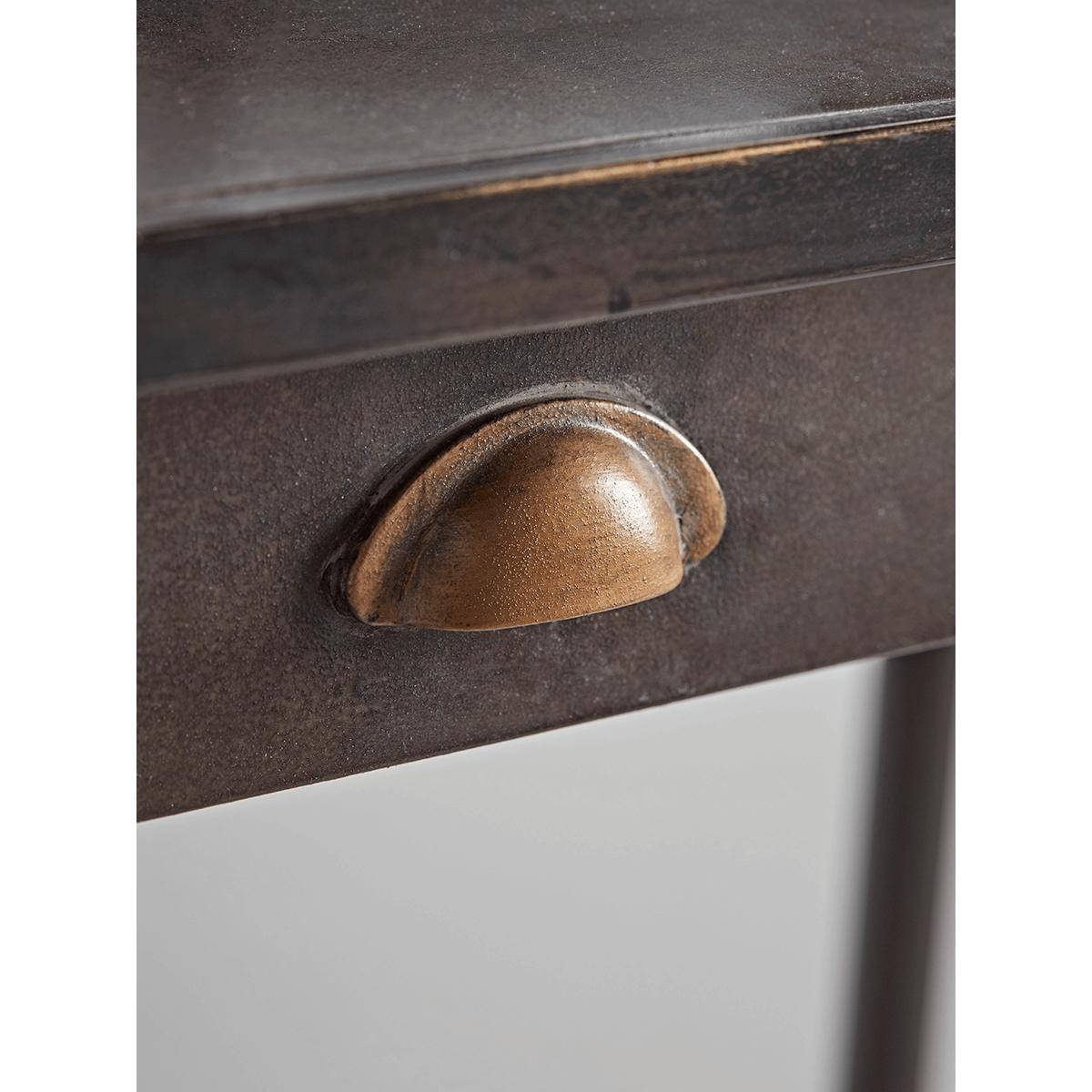 The burrs and welding marks of our industrial style iron desk, coupled with the copper-toned trims and hardware give it just the right factory feel for a Brooklyn loft look - to bring your home office right up to date. With a traditional escritoire design our desk will serve you well with two small drawers and a compartment to the back to organise your work. Within the main body of the desk is a central cup-handled drawer to stow your papers.