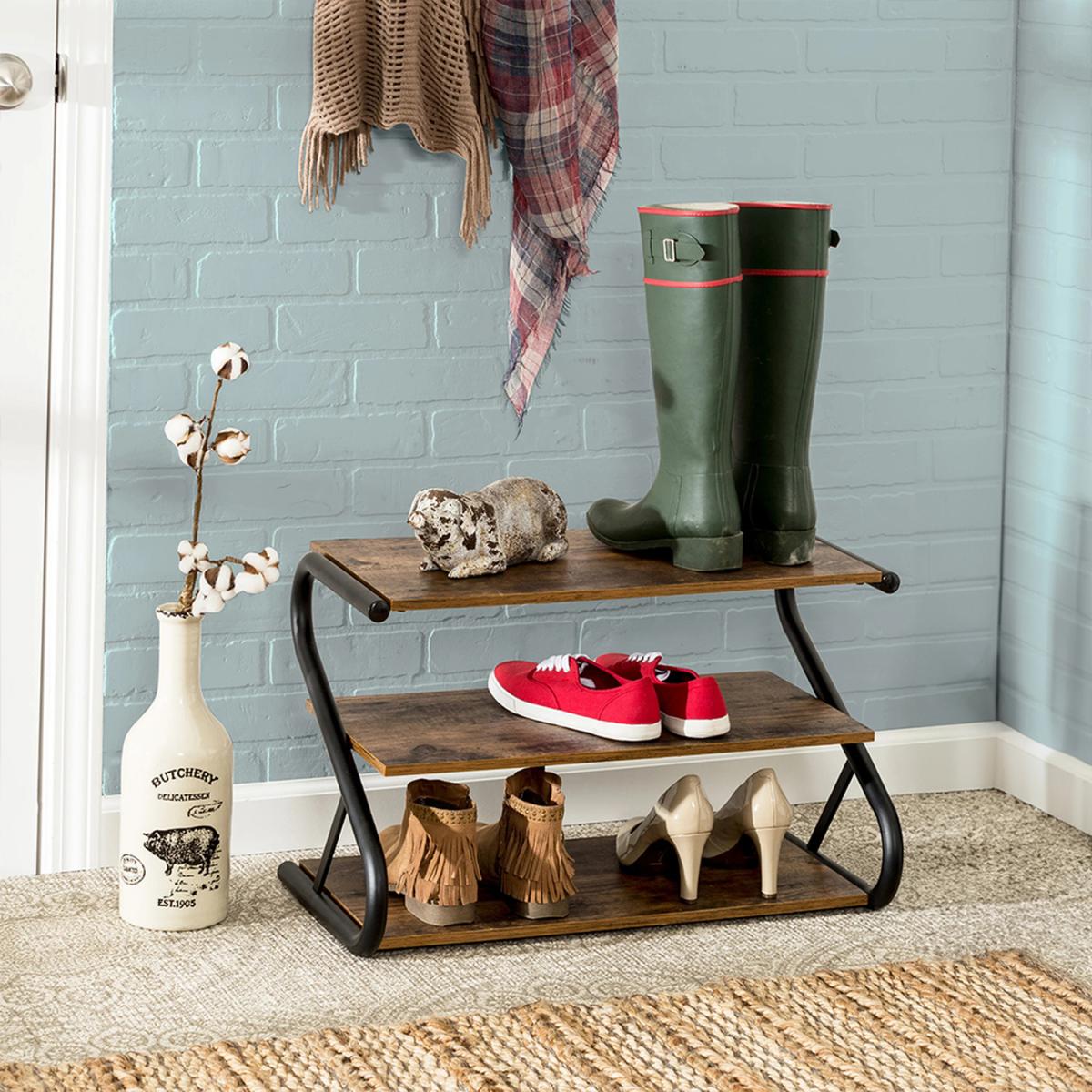 Industrial Metal S-frame Shoe Rack - 3 Tiers - Brown