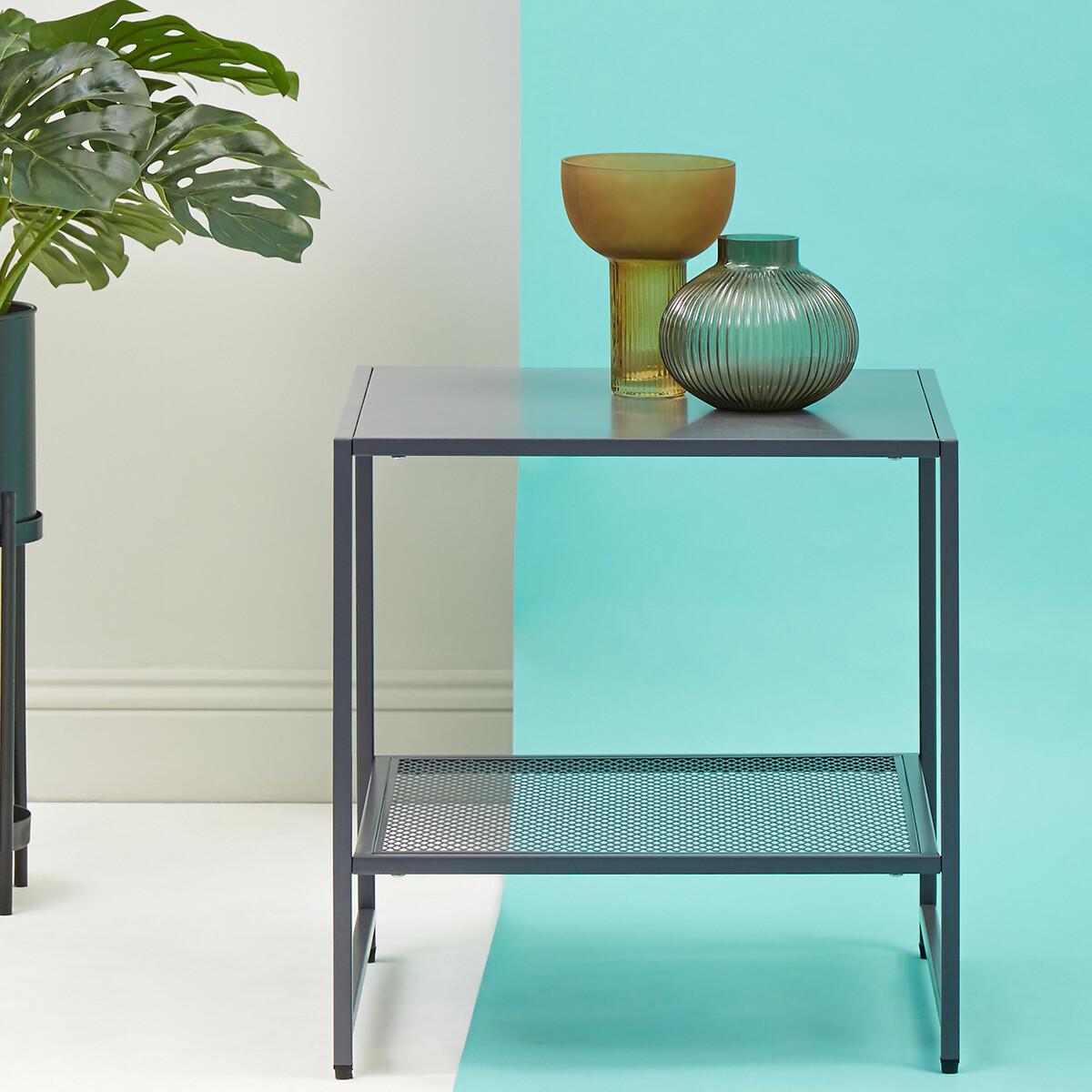 This end table with a simple and streamlined design will suit industrial living rooms. The powder coated black metal design features an open mesh shelf at the bottom for added display or storage. Product details Made from powder coated cold rolled steel Open mesh shelf Assembly required. Care instructions Wipe clean with a soft cloth. Product Composition - Metal. Product Dimensions - 51 cm x 51 cm x 51 cm , Weight - 4.5 kg. Package Dimensions - 54 cm x 54 cm x 12 cm, Weight 6 kg. This product will be dispatched by one of our trusted suppliers. You’ll be contacted by their selected courier about your delivery. PREMI01