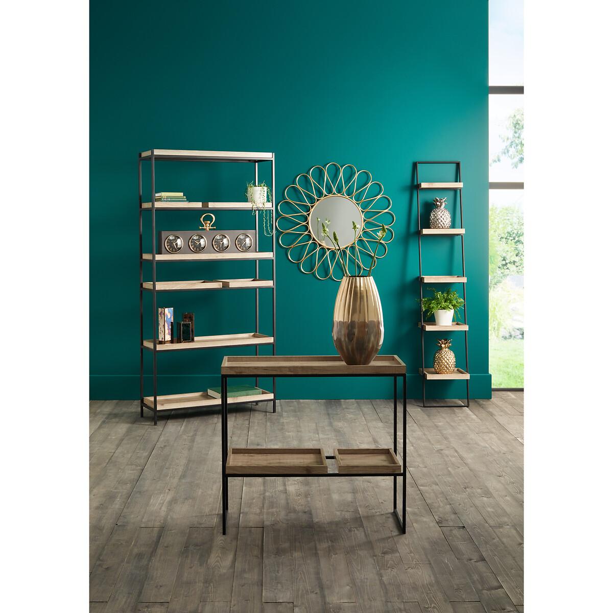 Introduce the industrial with this stunning shelving unit. Matte black metal frame and natural wood veneer surfaces are the key elements to this loft inspired piece. Ample storage for books or ornaments, this unit is both functional and stylish. Product details• Natural wood veneer shelving• Black matte metal frame• Tray style shelves • 6 shelves (fixed)• Fully assembled Product Composition - 65% MDF & 35% Iron. Product Dimensions - 30 cm x 90 cm x 183 cm , Weight - 27.7 KGPackage Dimensions - 185.5 cm x 92 cm x 32 cm, Weight 32.4 kg. Please note: this product cannot be be delivered to all Offshore Islands Northern Ireland or Republic of Ireland. This product will be dispatched by one of our trusted suppliers. You’ll be contacted by their selected courier about your delivery. PACIF01