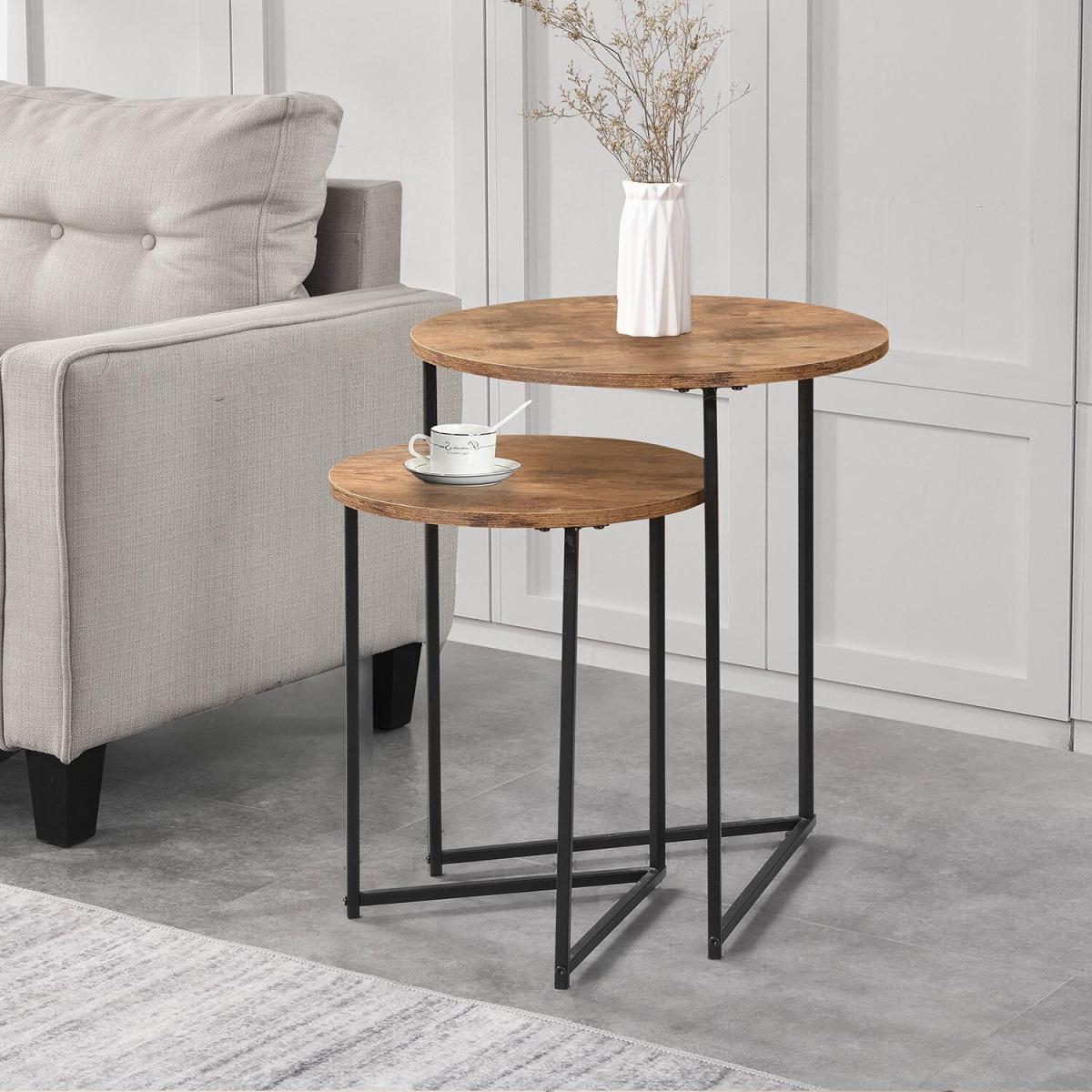 This beautifully modern set of Industrial Nest of Tables is a stunning pair of tables with a contemporary look thanks to their dark oak and black effect finishes. Ensuring a space-saving solution, the tables slot together as and when they are in use, making them easy to store and giving you more surface space whenever you need it. Easy to coordinate throughout your home, this is a beautiful addition to your living room.